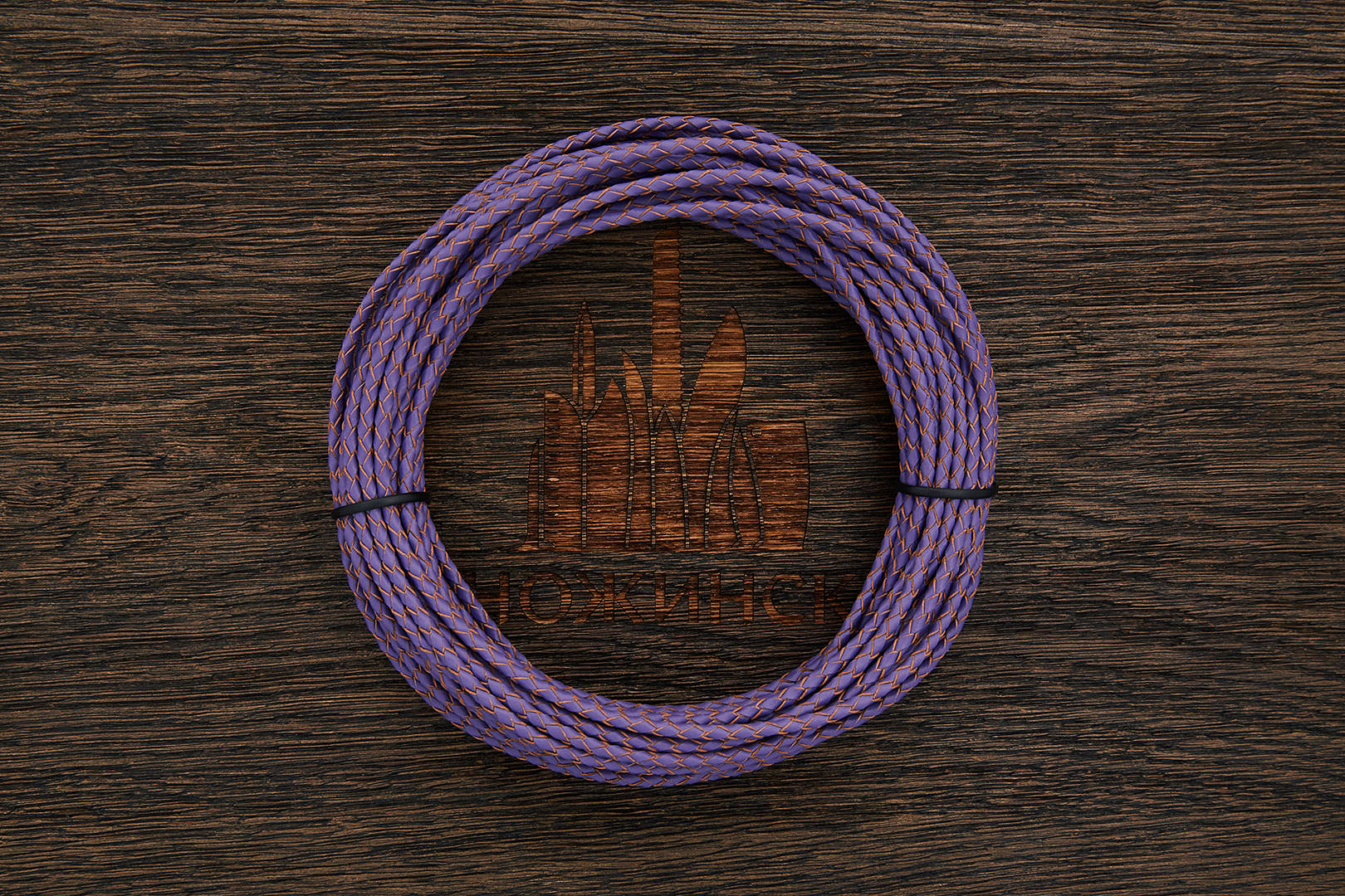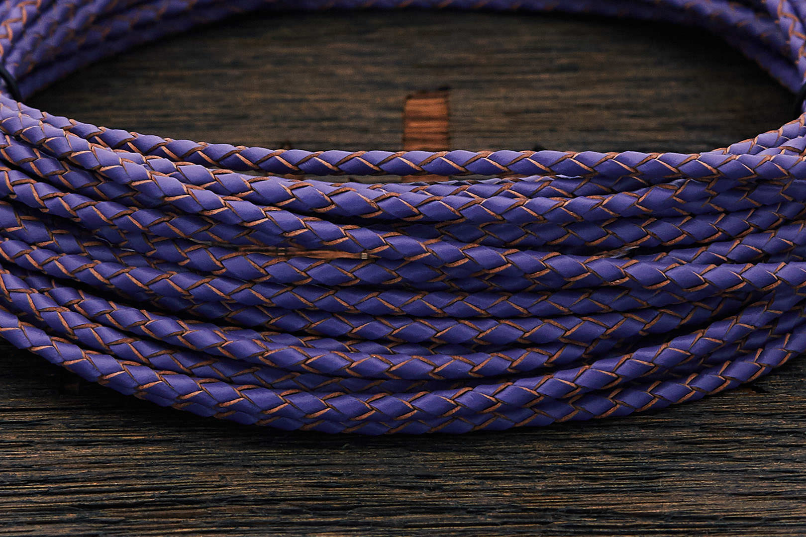 Каталог Паракорд Кожаные шнурки Кожаный плетеный шнурок 3,0мм (фиолетовый, торец бежевый), кратно 1м | Арт LLB.3/13