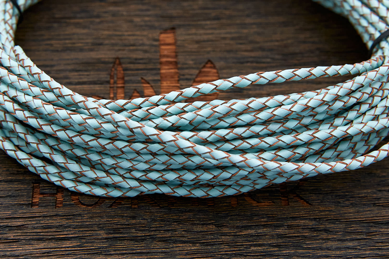 Каталог Паракорд Кожаные шнурки Кожаный плетеный шнурок 3,0мм (голубой, торец бежевый), кратно 1м | Арт LLB.3/10