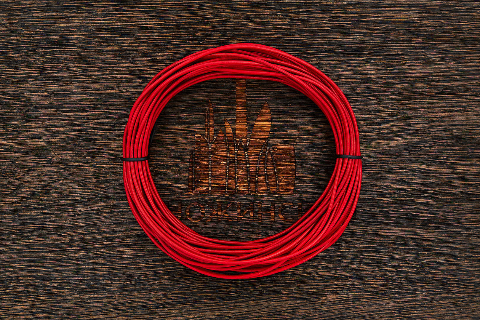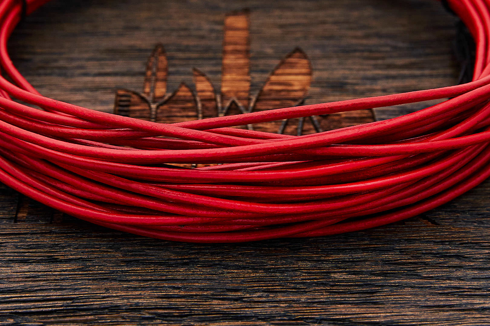 Шнурок из натуральной телячьей кожи, круглый в сечении, диаметр 2,0 мм. Кожа в центре светло-коричневая, поверхность шнурка покрашена и обладает легким глянцем. Максимальный отрез 10 м.