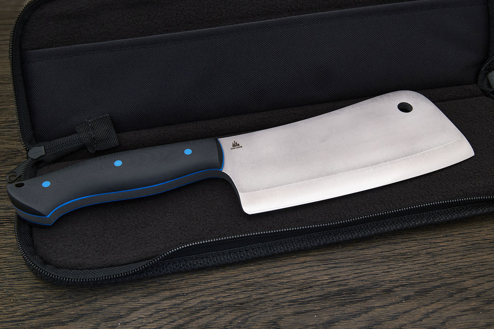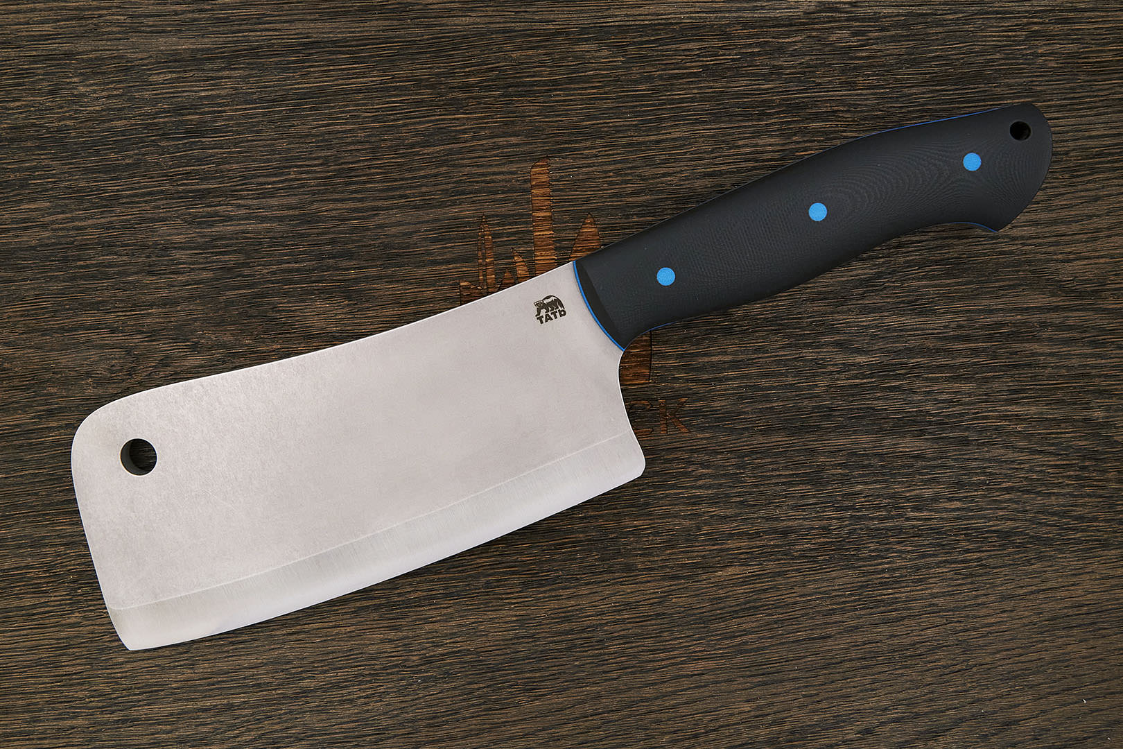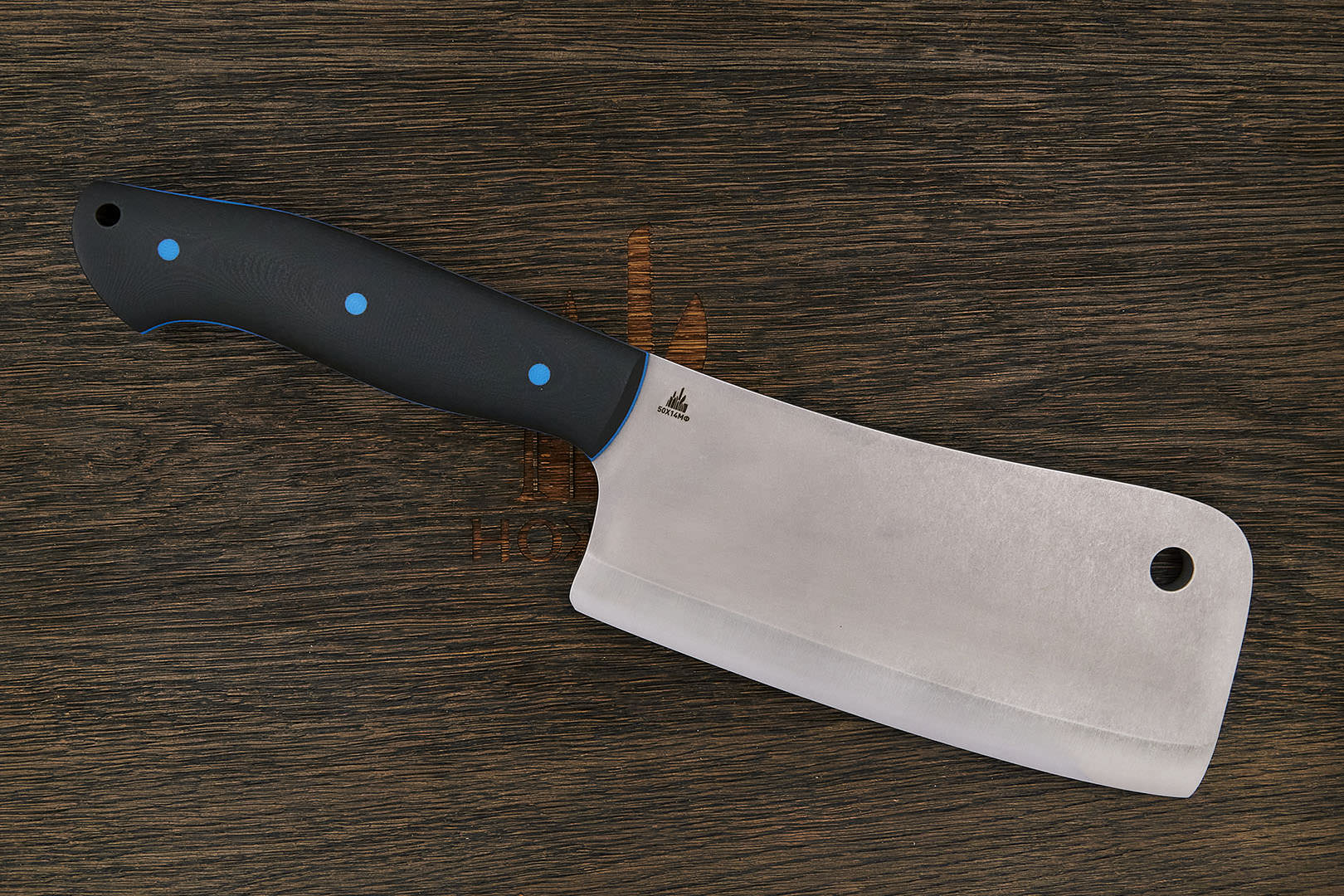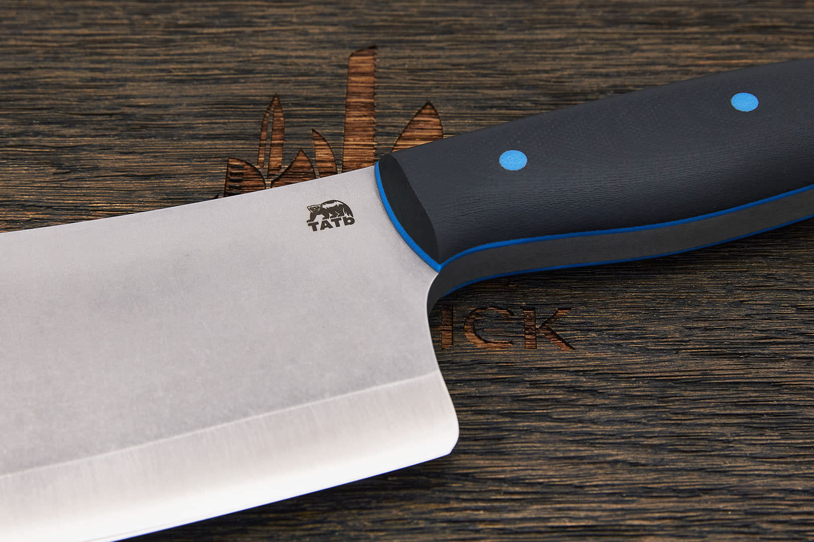 Топорик кухонный Мастерской Тать 160мм, сталь 50Х14МФ, G-10 черный (синий спейсер) | Арт Tа24.13 Топорик