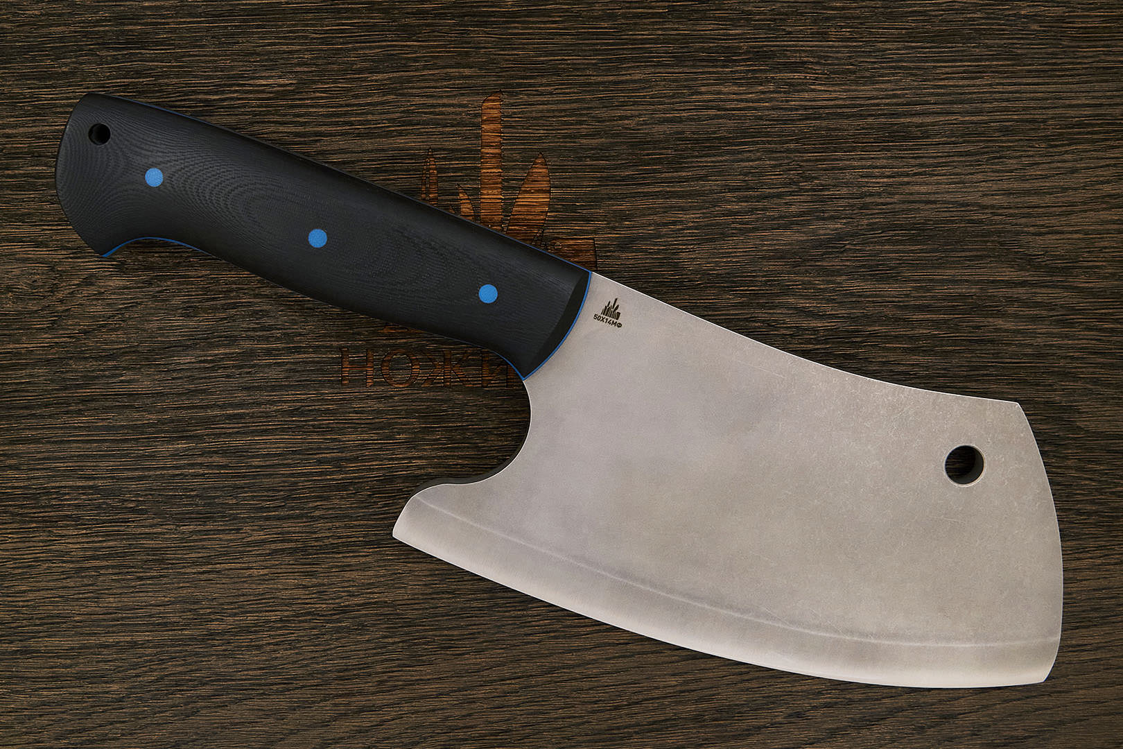 Каталог Кухонные ножи По бренду Другие производители Топорик кухонный Мастерской Тать 190мм, сталь 50Х14МФ, G-10 черный (синий спейсер) | Арт Tа25.04 Топорик