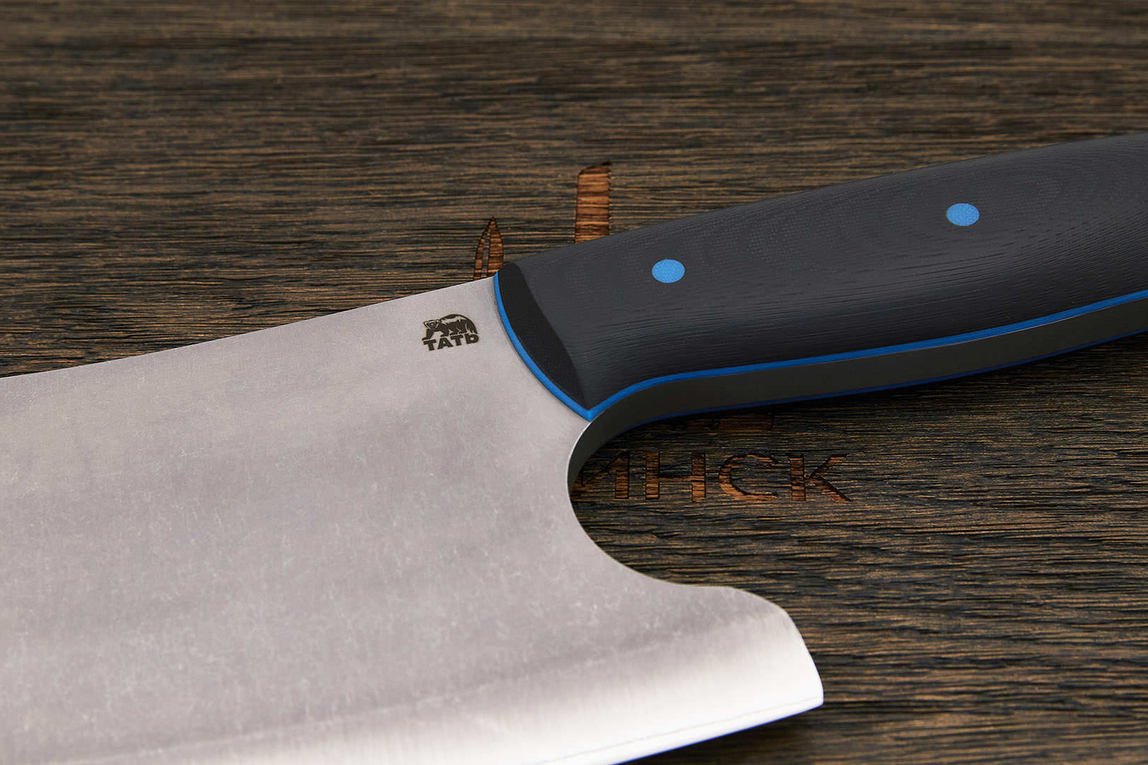 Топорик кухонный Мастерской Тать 190мм, сталь 50Х14МФ, G-10 черный (синий спейсер) | Арт Tа25.04 Топорик