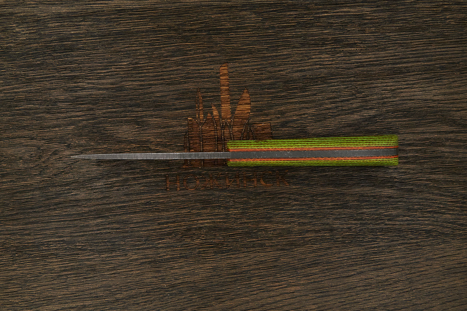 Микарта – очень прочный конструкционный материал, представляющий собой слоистый пластик на основе ткани и фенолформальдегидных или эпоксидных смол. Слои ткани пропитываются и склеиваются под высоким давлением и температурой. Благодаря совокупности потребительских свойств micarta (текстолит) прекрасно подходит для изготовления рукоятей ножей. Прочная, не впитывает ни воду, ни запахи, тактильная и высоко декоративная за счет разнообразия текстур и цветов. По теплопроводности микарта близка к натуральному дереву, что позволяет достаточно комфортно использовать ножи на сильном морозе.