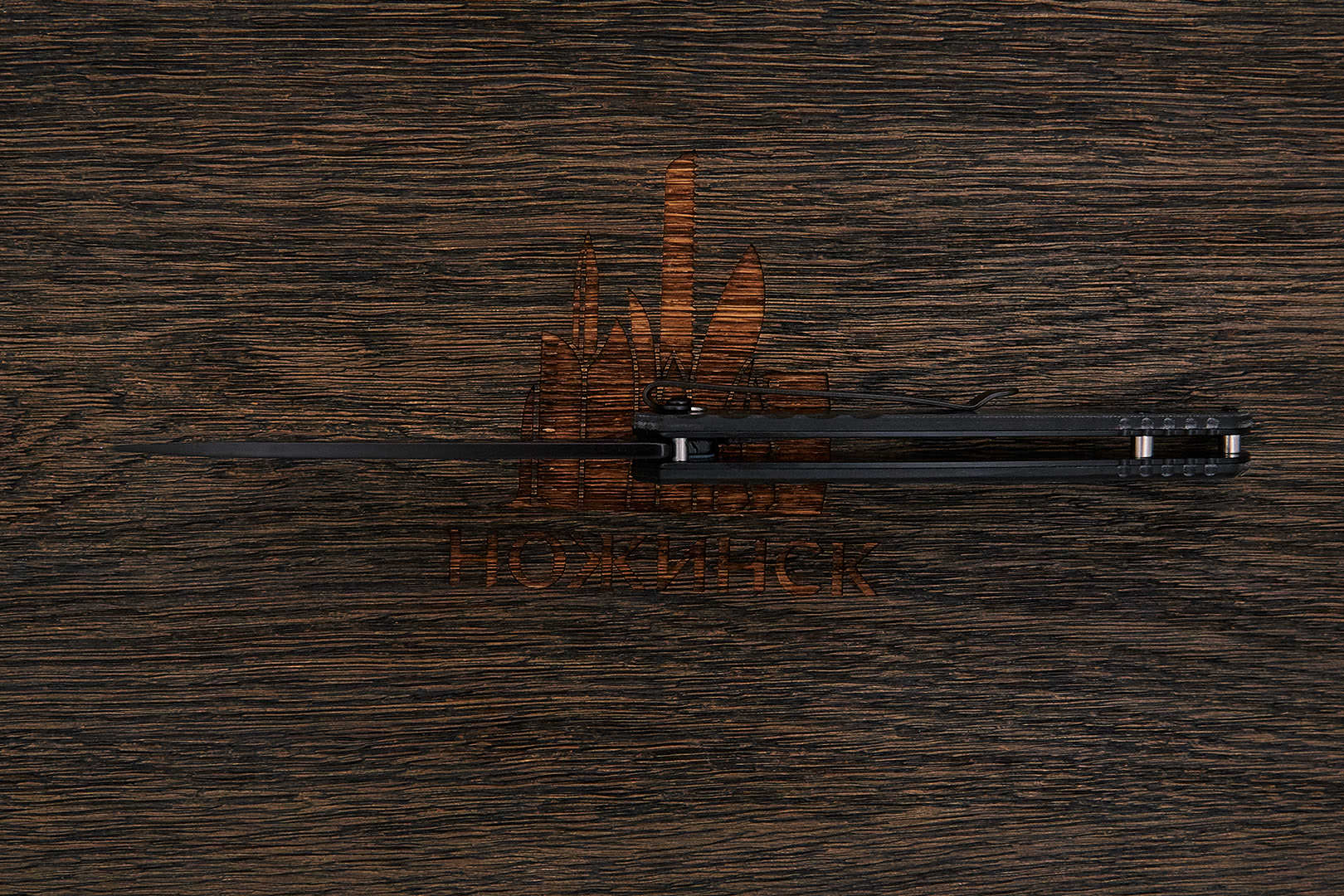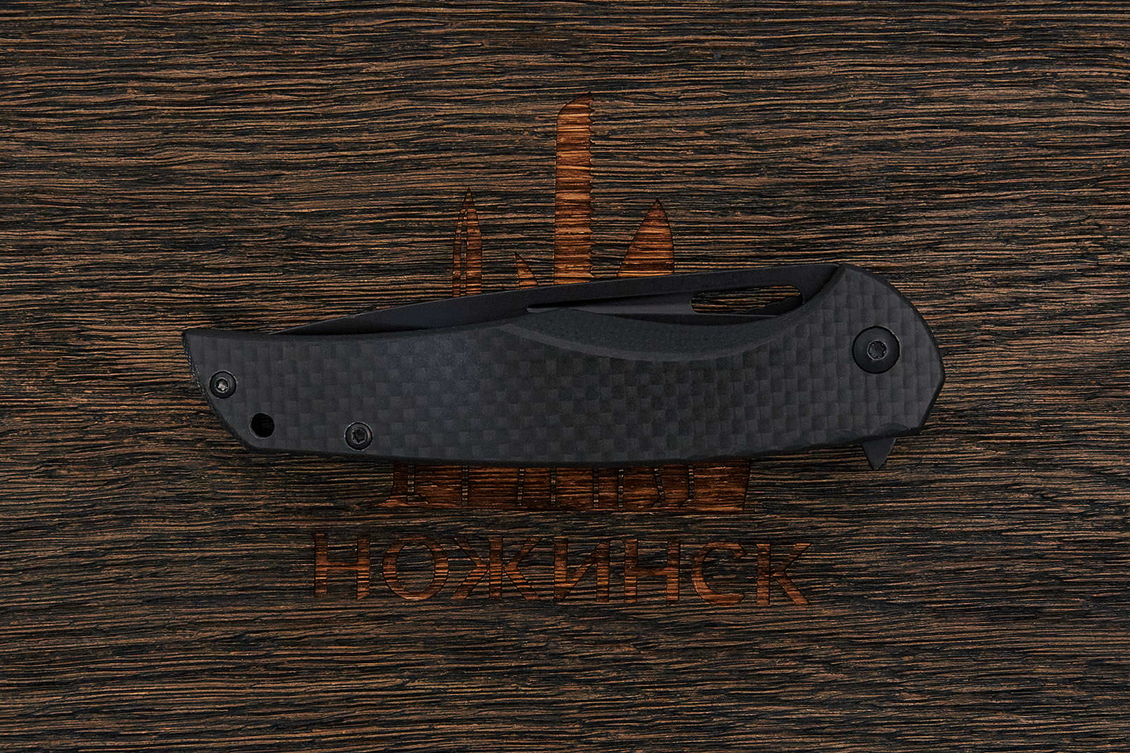 На сегодняшний день карбон один из лучших материалов для изготовления рукоятей ножей. Строгий по фактуре, нейтральный по цвету от светло-серого до почти черного, он практически не скользит в руке. Чрезвычайно прочный, абсолютно не впитывает ни воду, ни запахи, отлично переносит перепады влажности и температуры. Пожалуй, единственный его недостаток — сложная технология производства и, как следствие, высокая цена.