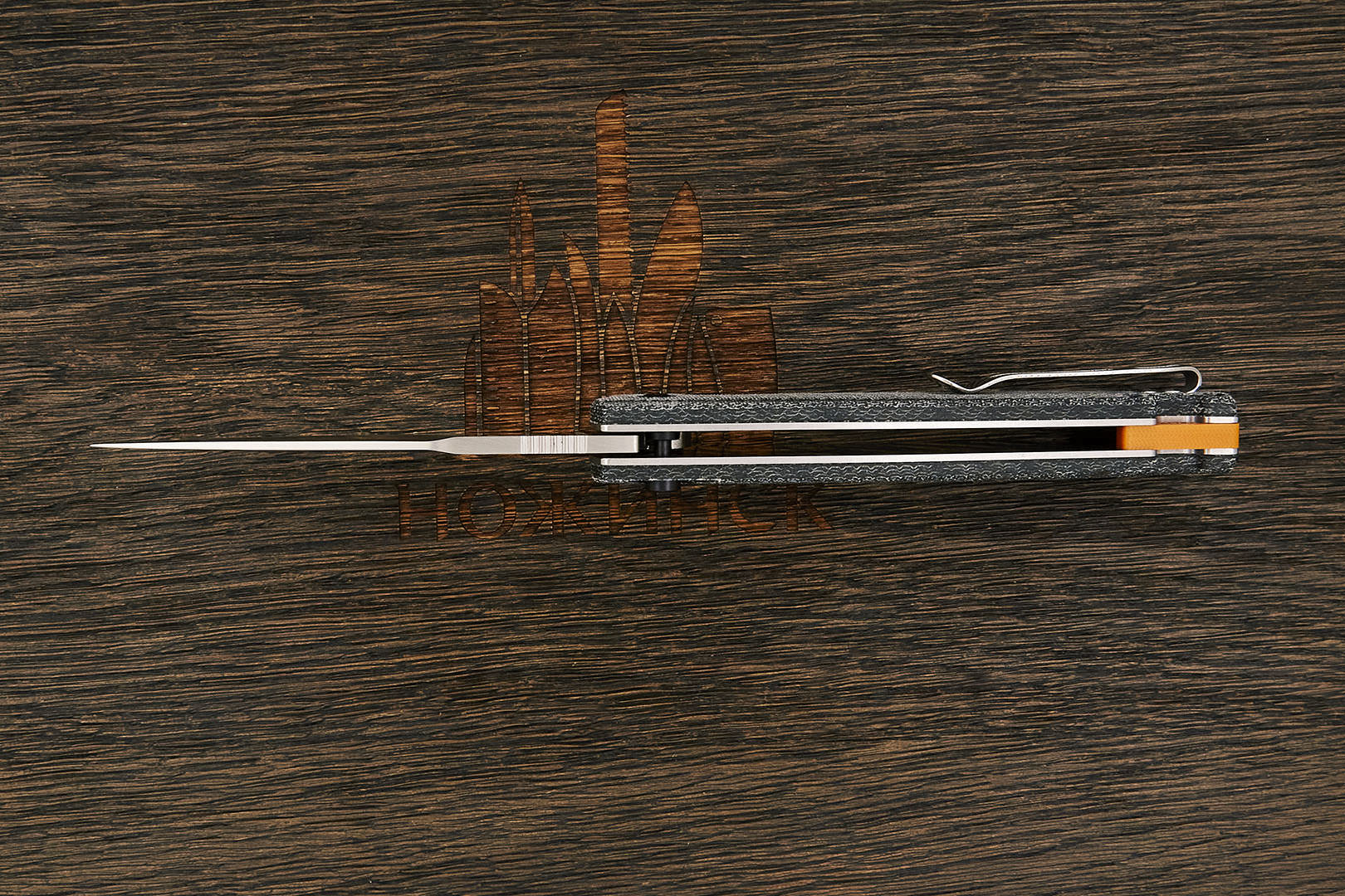 Микарта – очень прочный конструкционный материал, представляющий собой слоистый пластик на основе ткани и фенолформальдегидных или эпоксидных смол. Слои ткани пропитываются и склеиваются под высоким давлением и температурой. Благодаря совокупности потребительских свойств micarta (текстолит) прекрасно подходит для изготовления рукоятей ножей. Прочная, не впитывает ни воду, ни запахи, тактильная и высоко декоративная за счет разнообразия текстур и цветов. По теплопроводности микарта близка к натуральному дереву, что позволяет достаточно комфортно использовать ножи на сильном морозе.