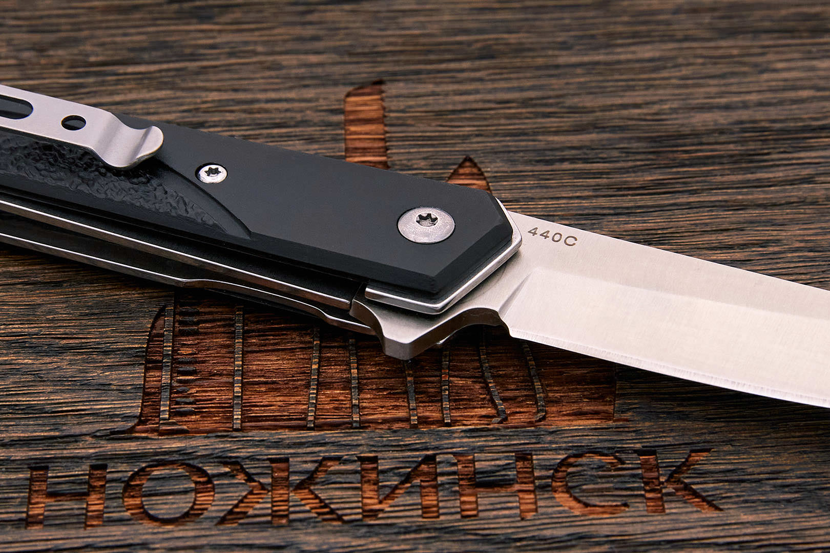 440C – самая высокоуглеродистая и самая распространенная сталь в серии 440-х как в Америке, так и в Европе. Длительное время являлась самой оптимальной по совокупности свойств для клинкового инструмента, сочетая в себе хорошие режущие свойства, достаточную вязкость, износоустойчивость и коррозионную стойкость. Тем не менее при длительном контакте с влагой может ржаветь, а чрезмерные нагрузки могут приводить к сколам режущей кромки.