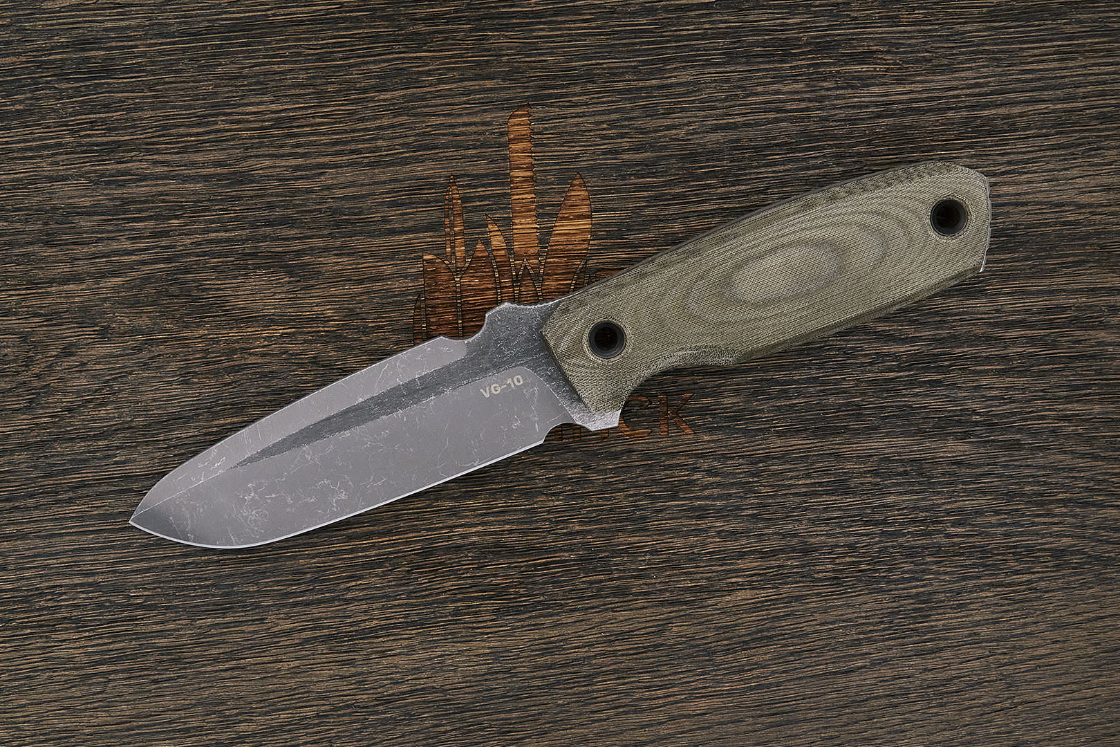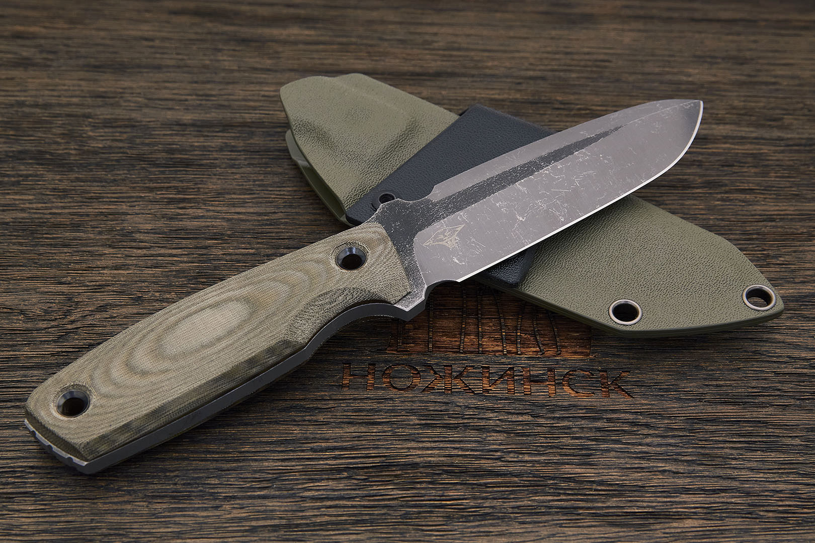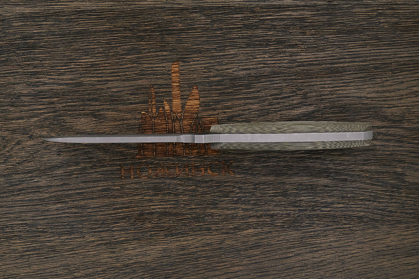 Микарта – очень прочный конструкционный материал, представляющий собой слоистый пластик на основе ткани и фенолформальдегидных или эпоксидных смол. Слои ткани пропитываются и склеиваются под высоким давлением и температурой. Благодаря совокупности потребительских свойств micarta (текстолит) прекрасно подходит для изготовления рукоятей ножей. Прочная, не впитывает ни воду, ни запахи, тактильная и высоко декоративная за счет разнообразия текстур и цветов. По теплопроводности микарта близка к натуральному дереву, что позволяет достаточно комфортно использовать ножи на сильном морозе.