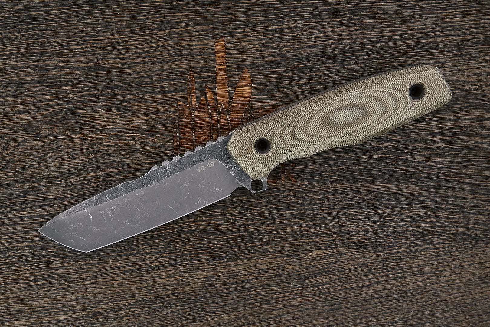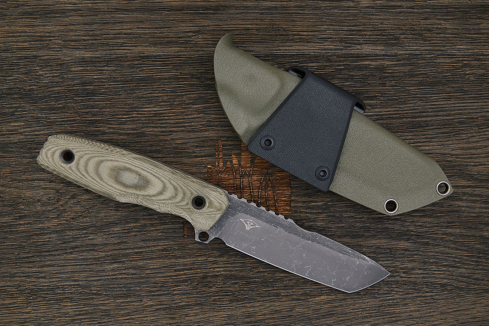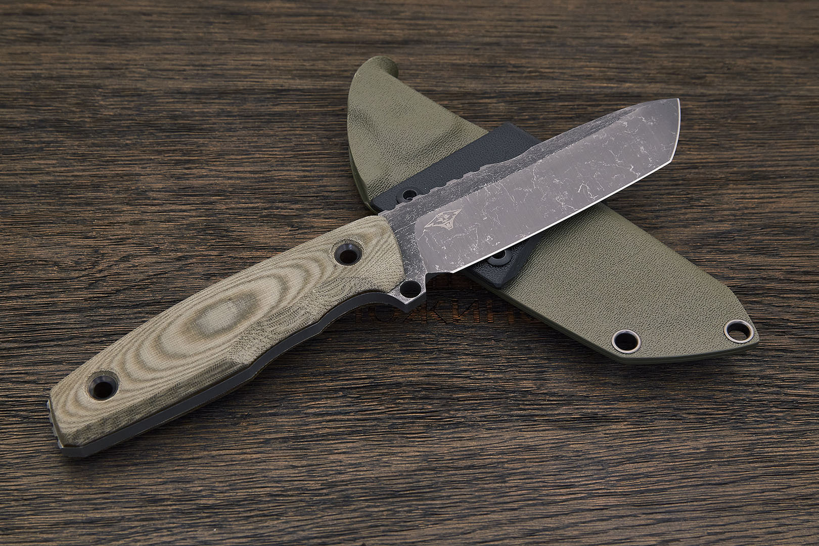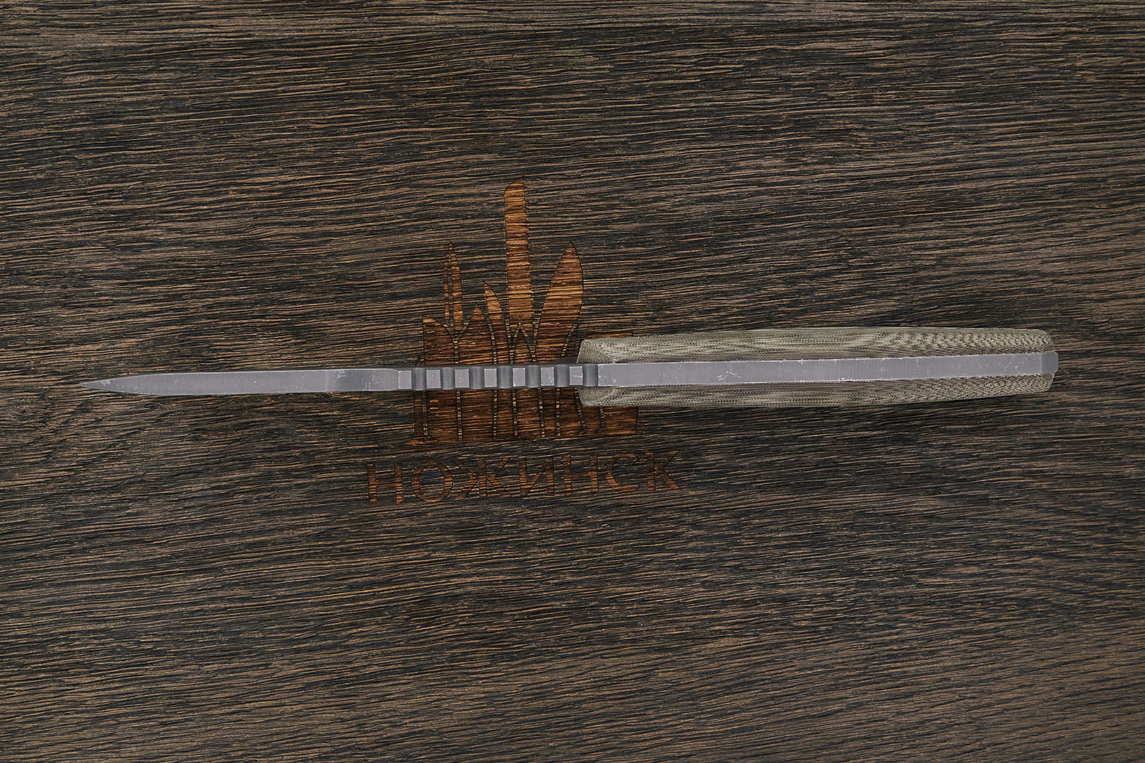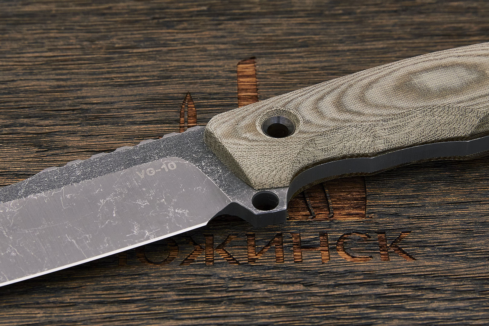 Микарта – очень прочный конструкционный материал, представляющий собой слоистый пластик на основе ткани и фенолформальдегидных или эпоксидных смол. Слои ткани пропитываются и склеиваются под высоким давлением и температурой. Благодаря совокупности потребительских свойств micarta (текстолит) прекрасно подходит для изготовления рукоятей ножей. Прочная, не впитывает ни воду, ни запахи, тактильная и высоко декоративная за счет разнообразия текстур и цветов. По теплопроводности микарта близка к натуральному дереву, что позволяет достаточно комфортно использовать ножи на сильном морозе.