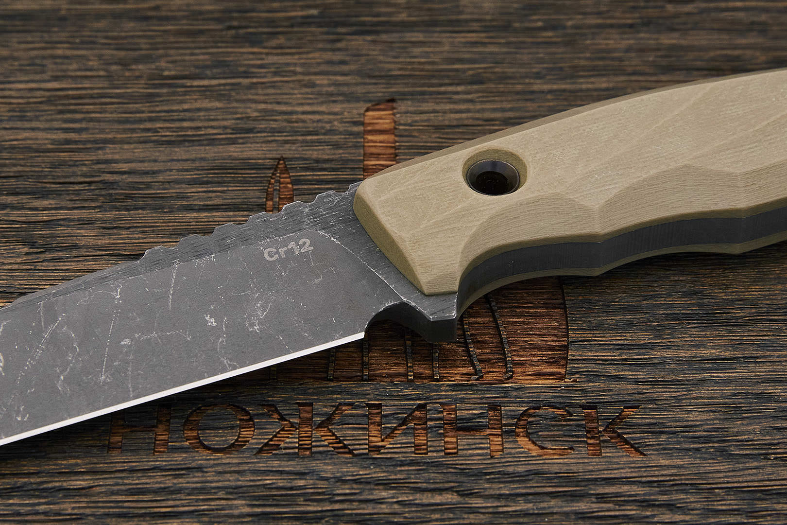 Х12МФ – высоколегированная условно коррозионностойкая сталь российского производства. Аналог американской D2. В состав стали входят молибден, ванадий, никель и другие. Сочетание элементов придает стали отличную прочность, упругость, устойчивость к воздействию температур, износоустойчивость.