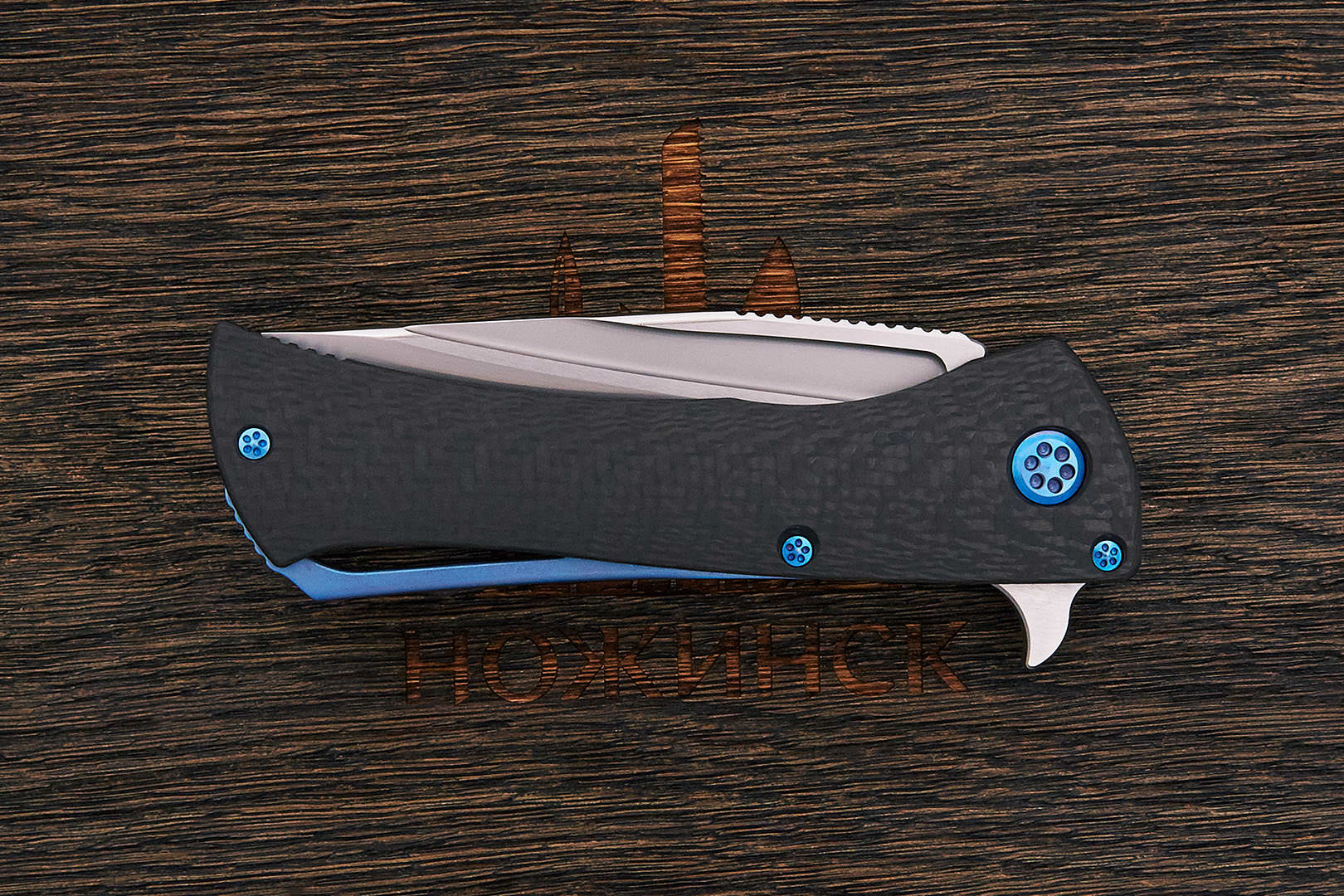 На сегодняшний день карбон один из лучших материалов для изготовления рукоятей ножей. Строгий по фактуре, нейтральный по цвету от светло-серого до почти черного, он практически не скользит в руке. Чрезвычайно прочный, абсолютно не впитывает ни воду, ни запахи, отлично переносит перепады влажности и температуры. Пожалуй, единственный его недостаток — сложная технология производства и, как следствие, высокая цена.