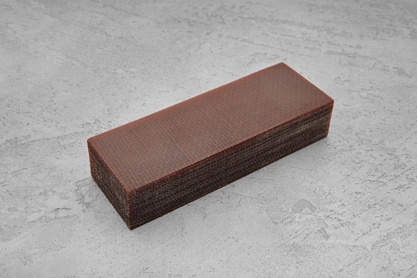 Каталог Для мастеров Материалы для рукояти ножа Микарта (текстолит) Джутовая микарта, блок 135х45х28мм Т8 | Арт Br.J28.008