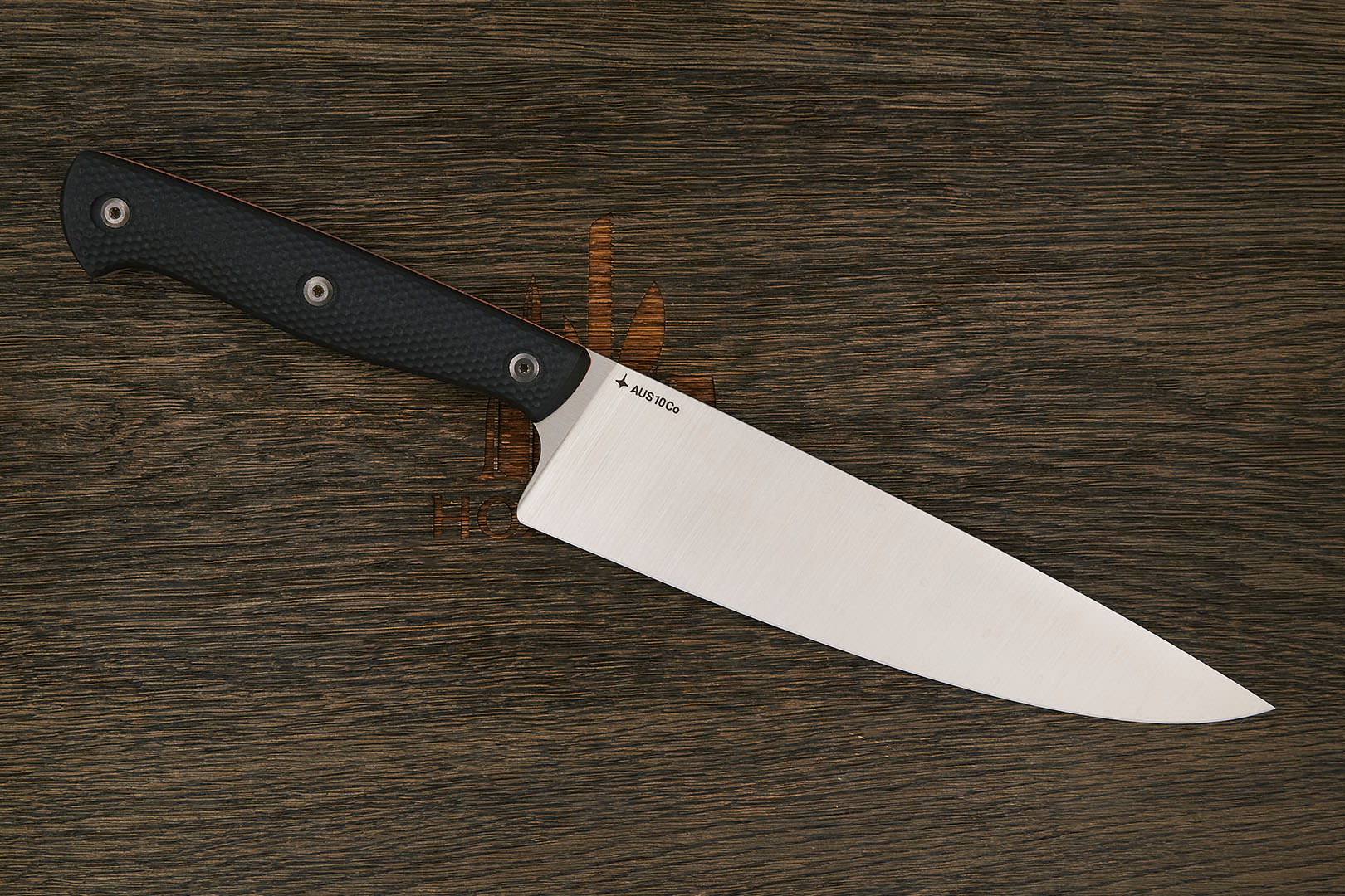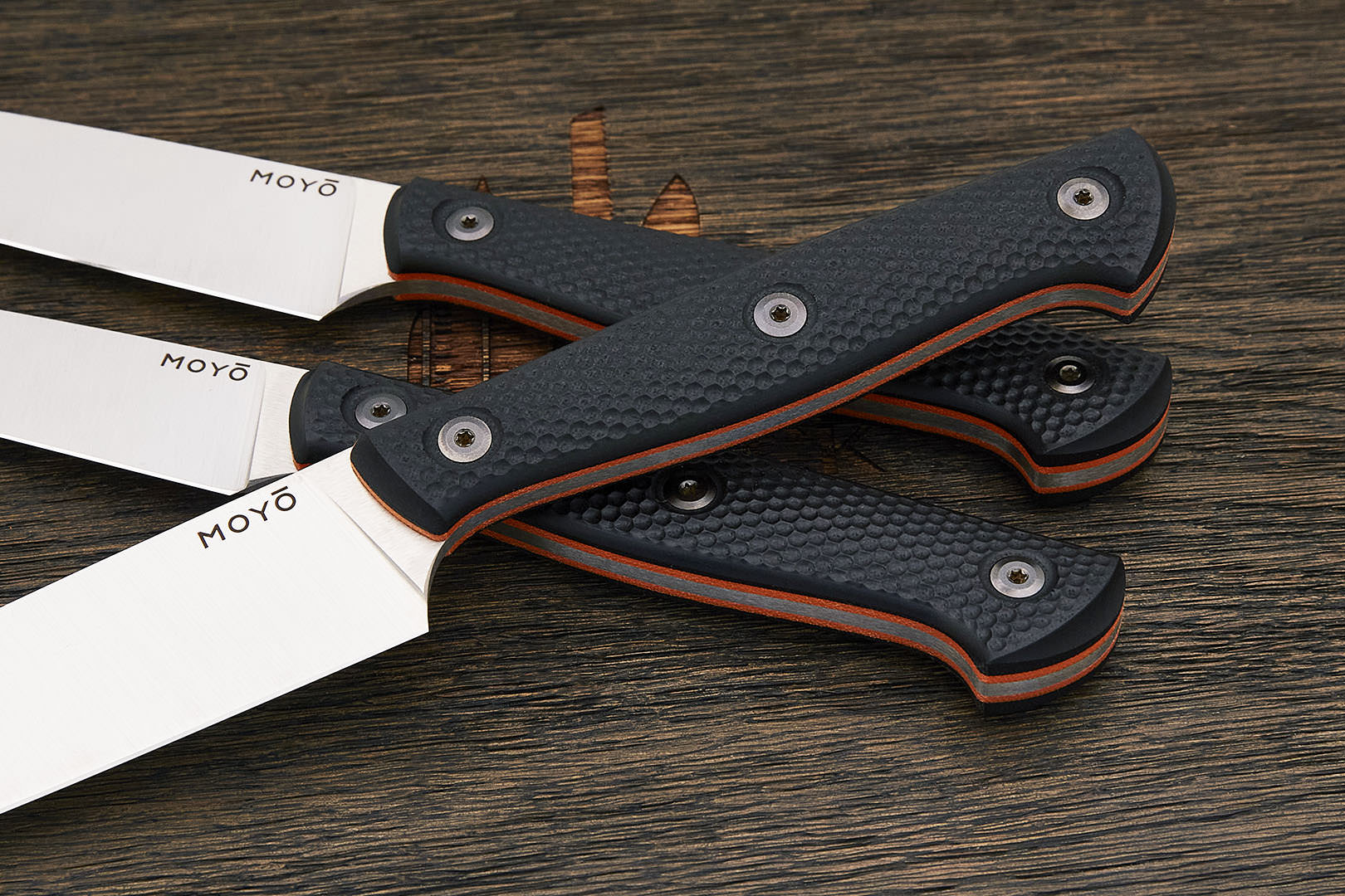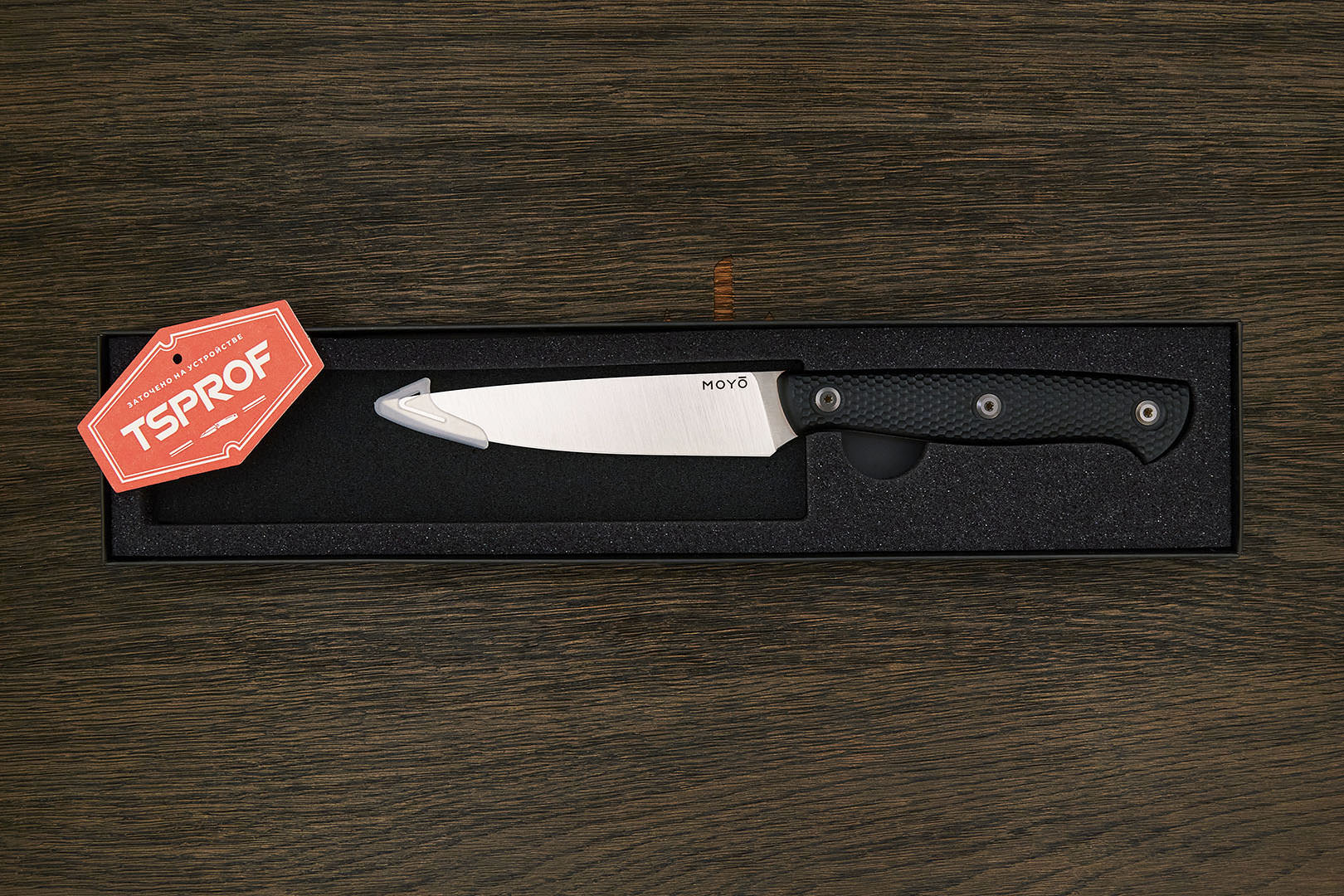 Все ножи MOYO изготовлены вручную с использованием передовых технологий и современных материалов. Композитные рукояти надежно и аккуратно собраны. Клинки с поперечным сатином имеют правильную геометрию и симметричное тонкое сведение. Режущая кромка сформирована на 15° с зеркальной полировкой в 10000 грит.