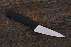 Рукоять сконструирована с наклоном вниз и имеет небольшую толщину. Удобно лежит при щепоточном хвате за клинок и классическом за черен в небольшой ладони. Грибок позволяет помогать мизинцем в удержании и управлении балансом ножа. Текстура на поверхности рукояти приятно ощущается в руке, повышает управляемость и препятствует скольжению.