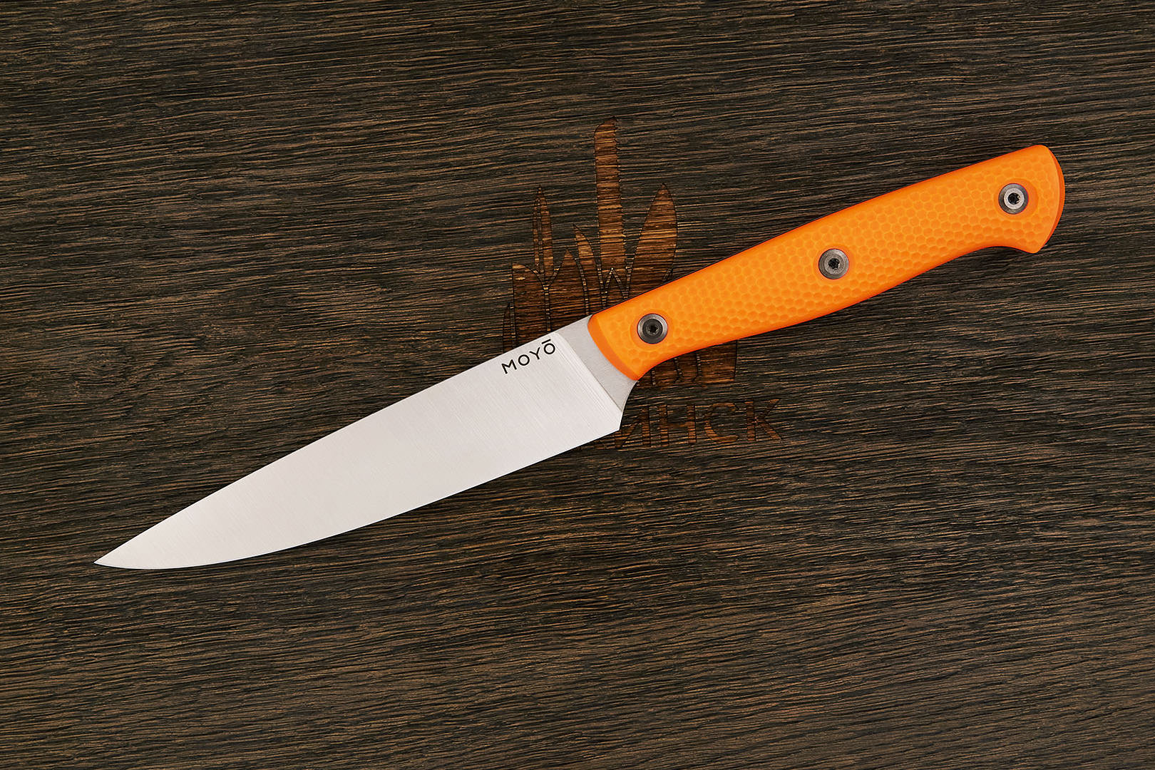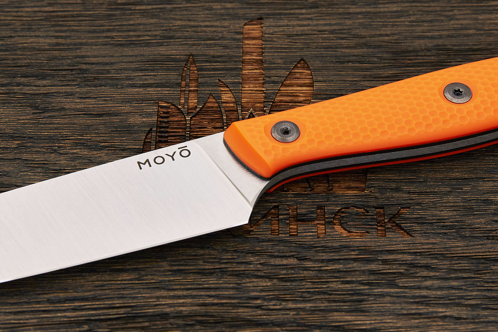 Все ножи MOYO изготовлены вручную с использованием передовых технологий и современных материалов. Композитные рукояти надежно и аккуратно собраны. Клинки с поперечным сатином имеют правильную геометрию и симметричное тонкое сведение. Режущая кромка сформирована на 15° с зеркальной полировкой в 10000 грит.