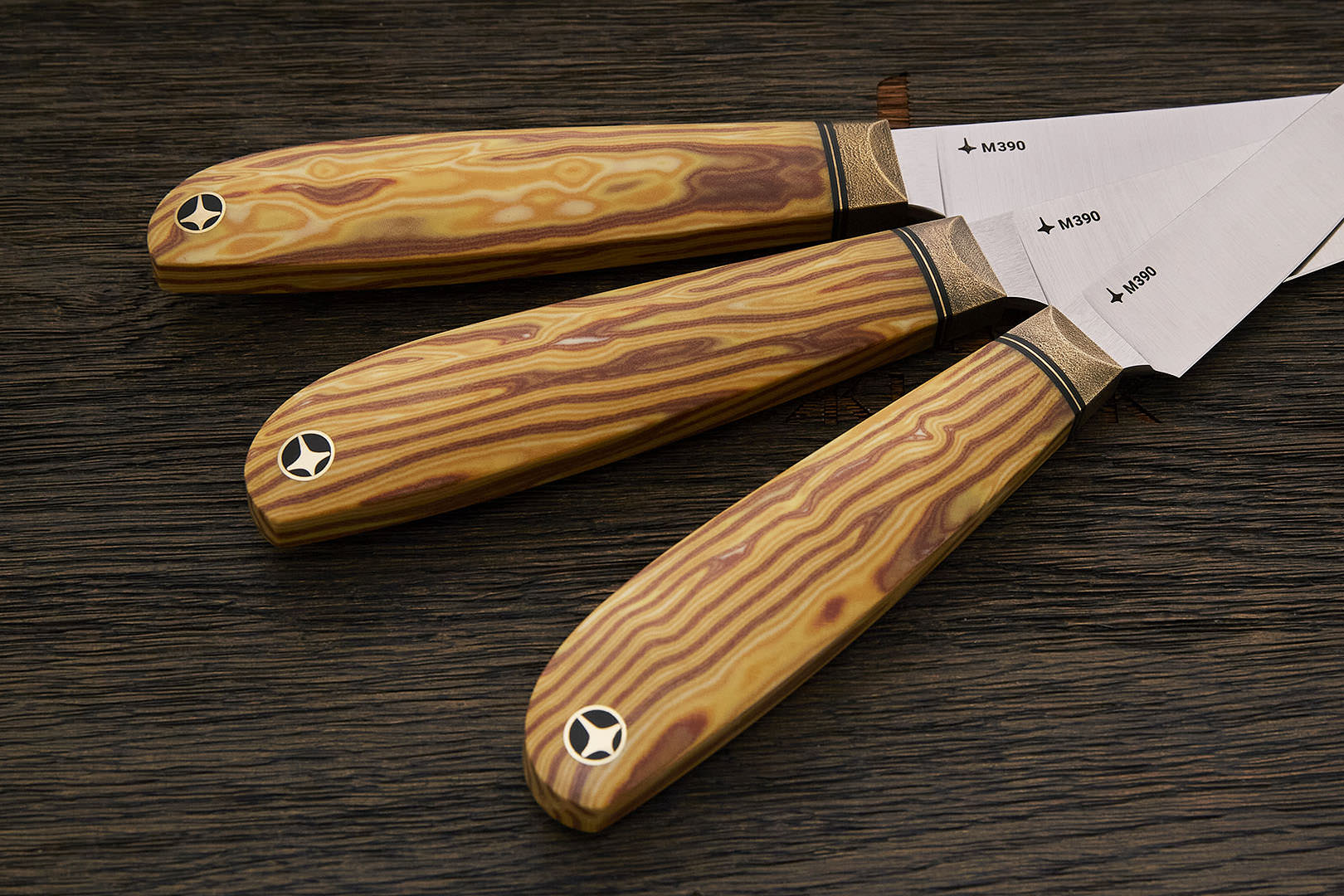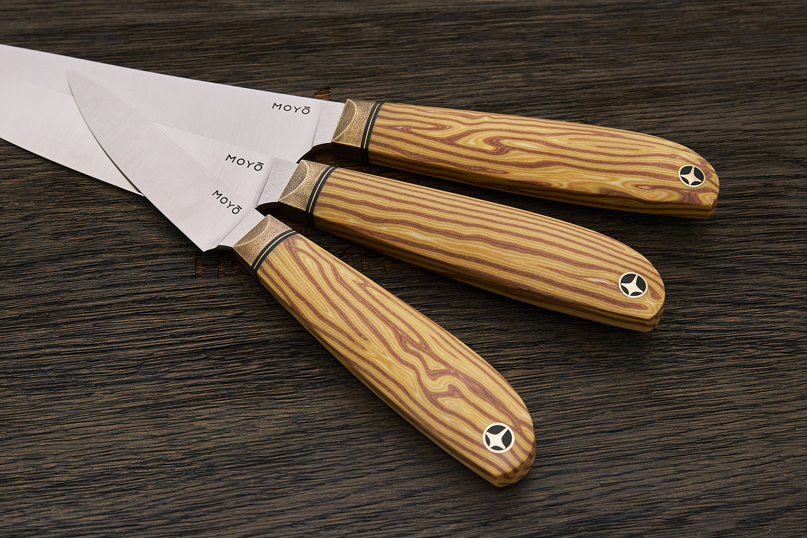 Все ножи MOYO изготовлены вручную с использованием передовых технологий и современных материалов. Композитные рукояти надежно и аккуратно собраны. Клинки с поперечным сатином имеют правильную геометрию и симметричное тонкое сведение. Режущая кромка сформирована на 15° с зеркальной полировкой в 10000 грит.