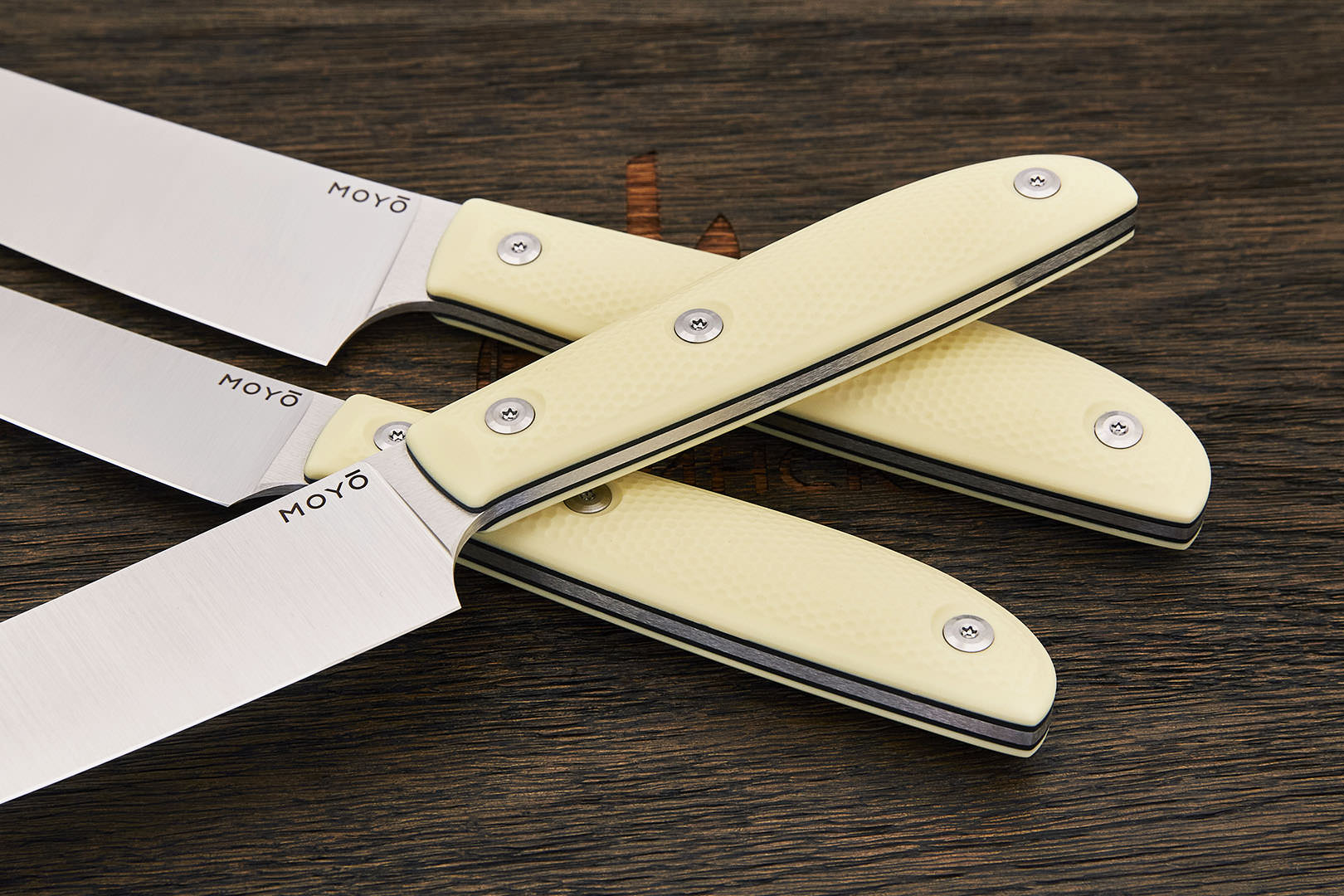 Все ножи MOYO изготовлены вручную с использованием передовых технологий и современных материалов. Композитные рукояти надежно и аккуратно собраны. Клинки с поперечным сатином имеют правильную геометрию и симметричное тонкое сведение. Режущая кромка сформирована на 15° с зеркальной полировкой в 10000 грит.