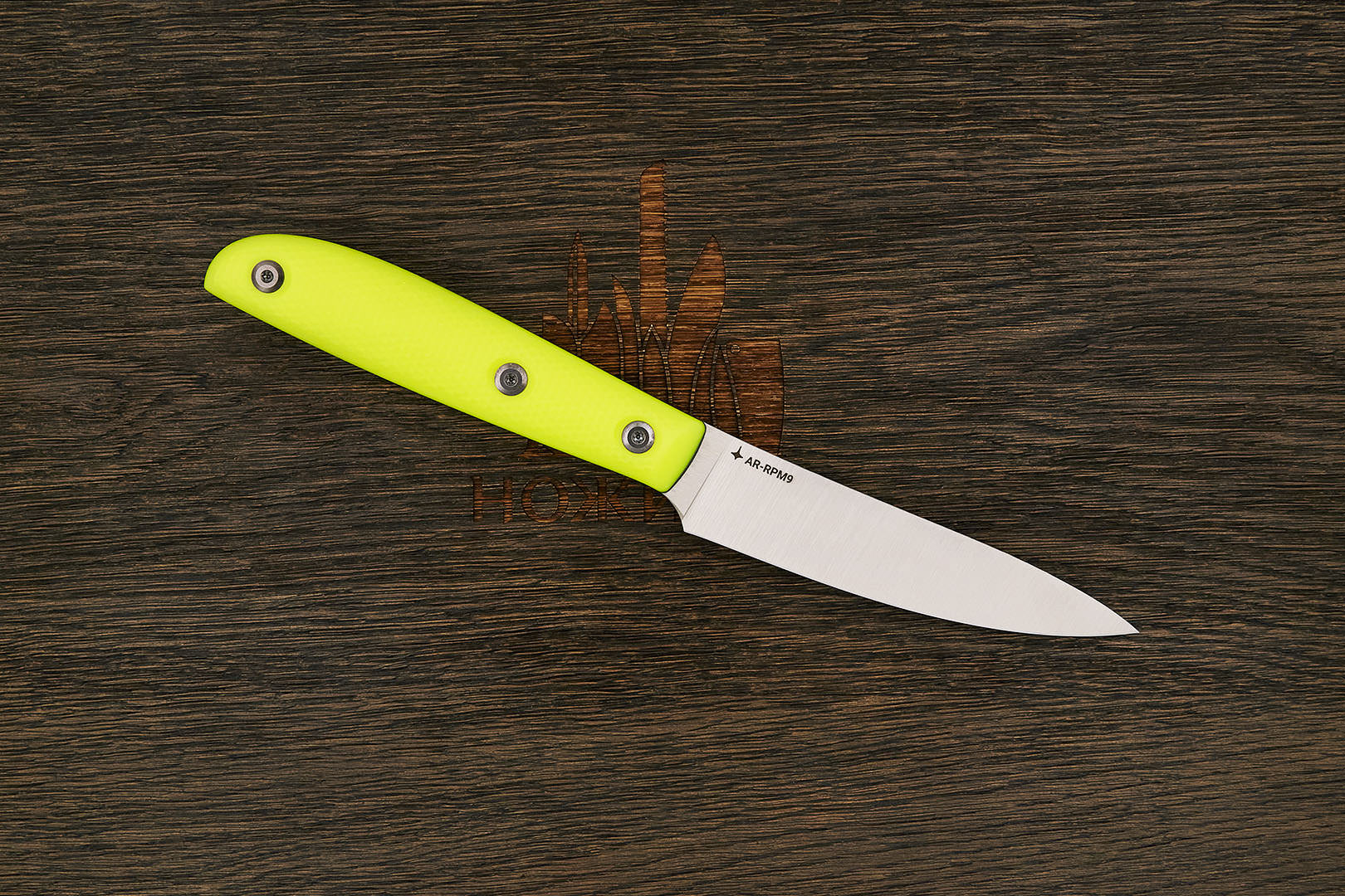 Каталог Кухонные ножи По бренду Кухонные ножи MOYO Нож кухонный MOYO Геликон овощной 105мм, сталь AR-RPM9, рукоять G10-extra желтый | Арт M33.02 Геликон О-105