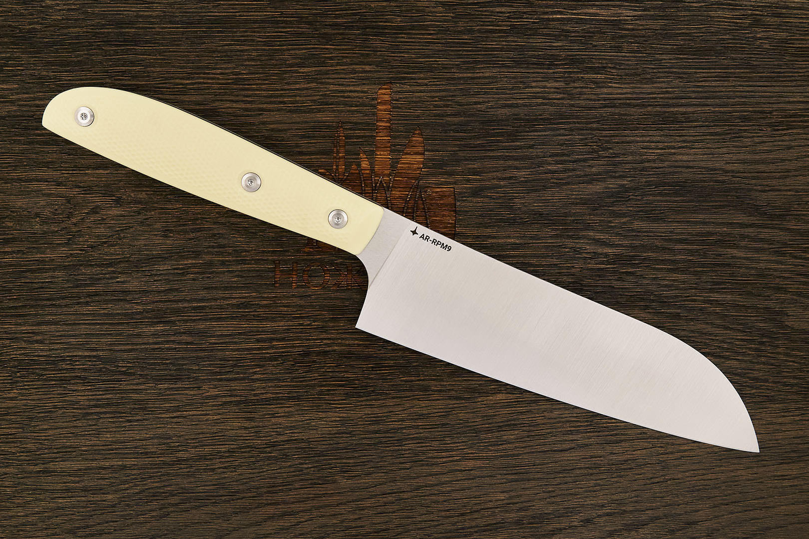 Нож кухонный MOYO Геликон сантоку 175мм, сталь AR-RPM9, рукоять G10-extra слоновая кость | Арт M27.06 Геликон С-175