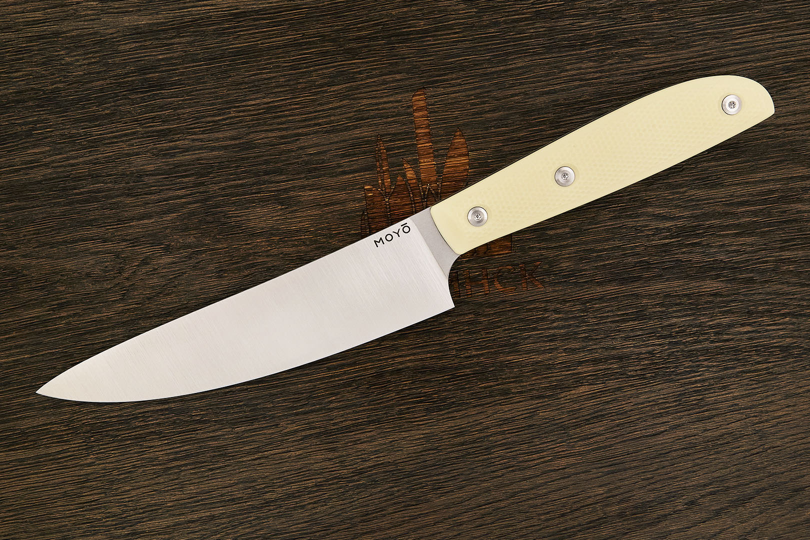 Все ножи MOYO изготовлены вручную с использованием передовых технологий и современных материалов. Композитные рукояти надежно и аккуратно собраны. Клинки с поперечным сатином имеют правильную геометрию и симметричное тонкое сведение. Режущая кромка сформирована на 15° с зеркальной полировкой в 10000 грит.