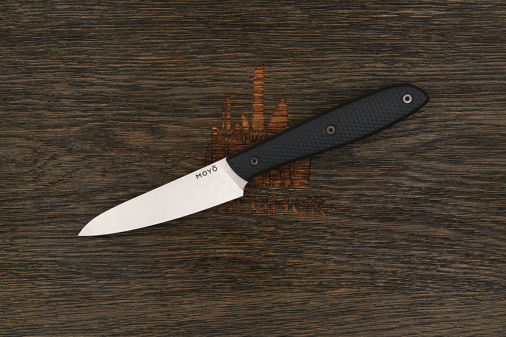 Все ножи MOYO изготовлены вручную с использованием передовых технологий и современных материалов. Композитные рукояти надежно и аккуратно собраны. Клинки с поперечным сатином имеют правильную геометрию и симметричное тонкое сведение. Режущая кромка сформирована на 15° с зеркальной полировкой в 10000 грит.