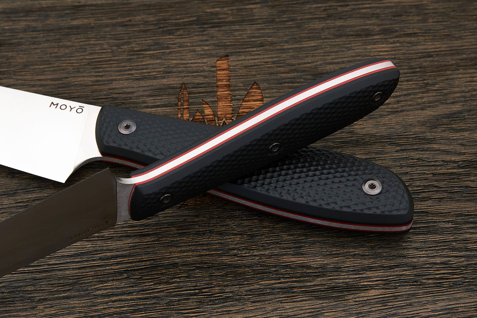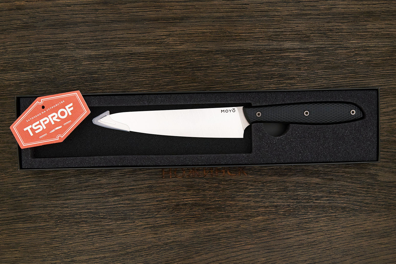 Все ножи MOYO изготовлены вручную с использованием передовых технологий и современных материалов. Композитные рукояти надежно и аккуратно собраны. Клинки с поперечным сатином имеют правильную геометрию и симметричное тонкое сведение. Режущая кромка сформирована на 15° с зеркальной полировкой в 10000 грит.
