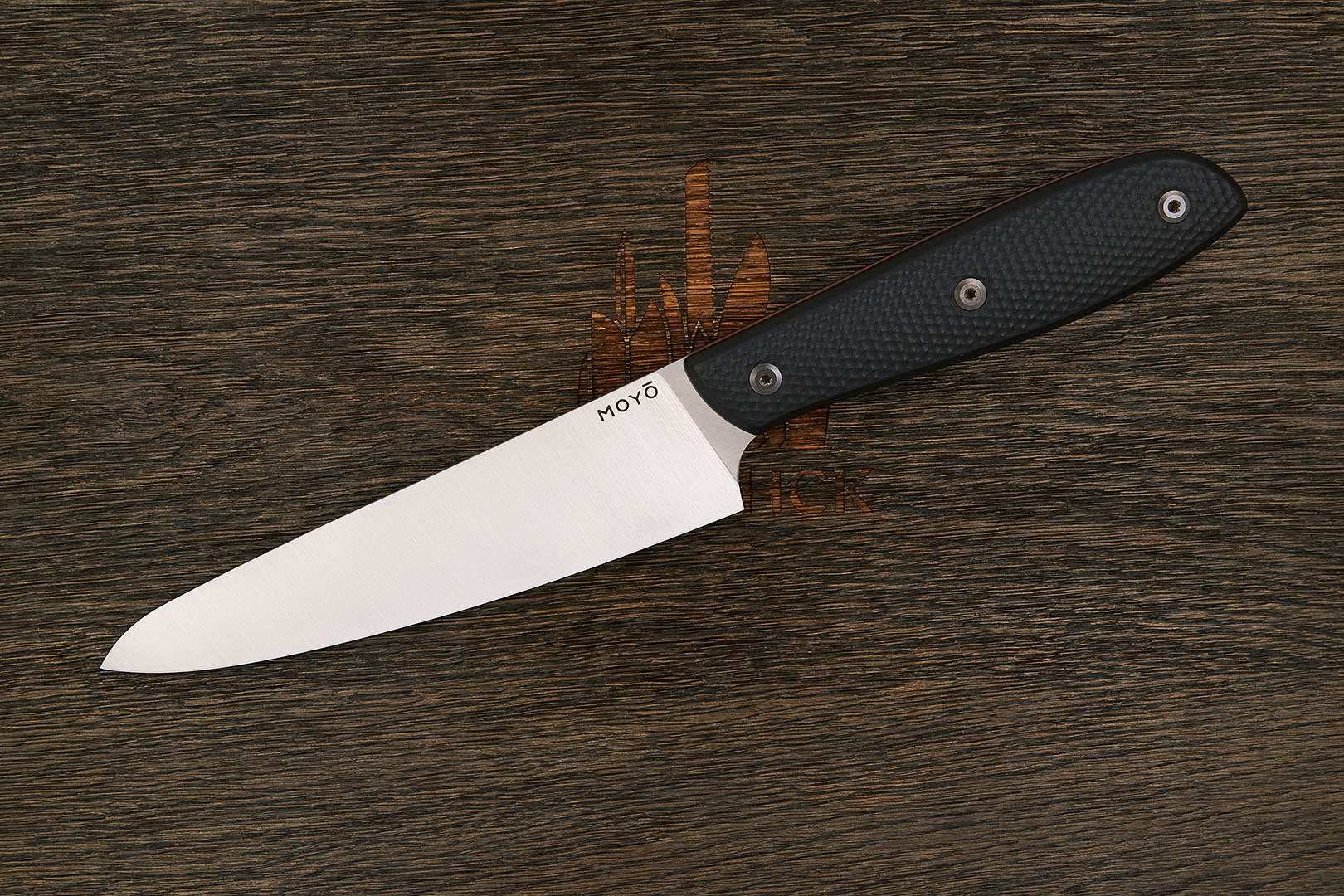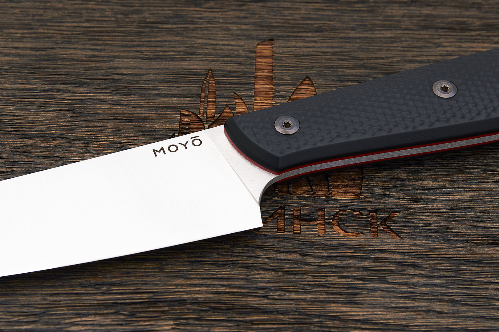 Все ножи MOYO изготовлены вручную с использованием передовых технологий и современных материалов. Композитные рукояти надежно и аккуратно собраны. Клинки с поперечным сатином имеют правильную геометрию и симметричное тонкое сведение. Режущая кромка сформирована на 15° с зеркальной полировкой в 10000 грит.