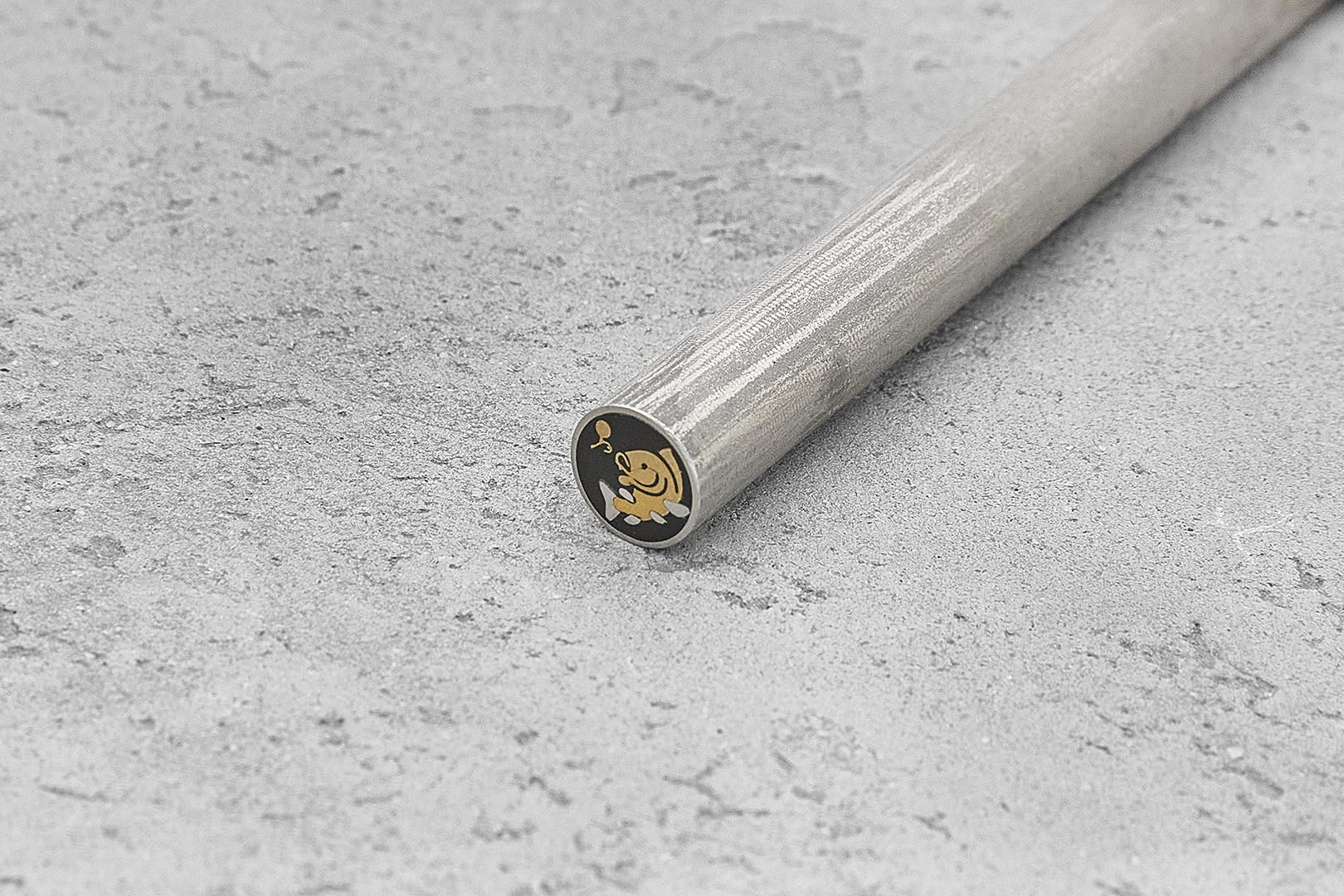 Мозаичная втулка, пин диаметром 10,0 мм и длиной 100±0,5 мм со вставкой, изготовленной по технологии электроэрозионной резки. Внешний контур выполнен из нержавеющей стали, центральная часть - из латуни и нержавеющей стали.