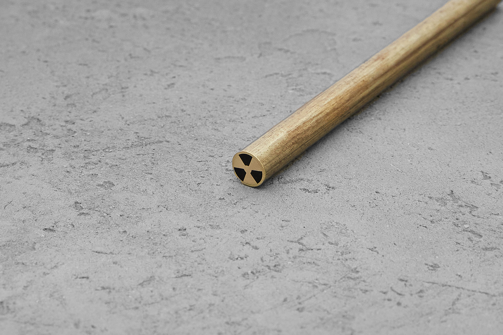 Мозаичная втулка, пин диаметром 8,0 мм и длиной 100±0,2 мм со вставкой, изготовленной по технологии электроэрозионной резки. Внешний контур и центральная часть пина выполнены из латуни.
