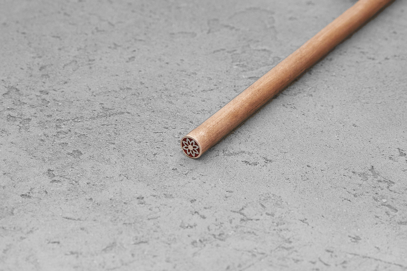 Мозаичная втулка, пин диаметром 6,0 мм и длиной 100±0,5 мм со вставкой, изготовленной по технологии электроэрозионной резки. Внешний контур пина выполнен из меди, центральная часть из нержавеющей стали.