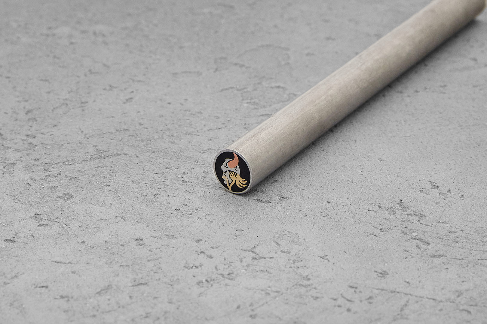 Мозаичная втулка, пин диаметром 10,0 мм и длиной 100±0,2 мм со вставкой, изготовленной по технологии электроэрозионной резки. Внешний контур пина выполнен из стали, центральная часть - из стали, латуни и меди.