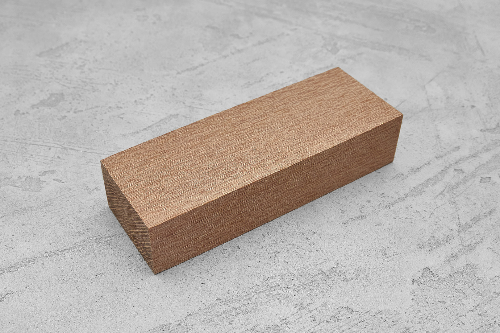 Целевые размеры бруска 135×46×30 мм, могут незначительно меняться в зависимости от особенности распила. На фотографии представлен образец, максимально соответствующий среднему бруску из партии, но фактическая текстура и тон каждой заготовки для рукояти будет незначительно отличаться.