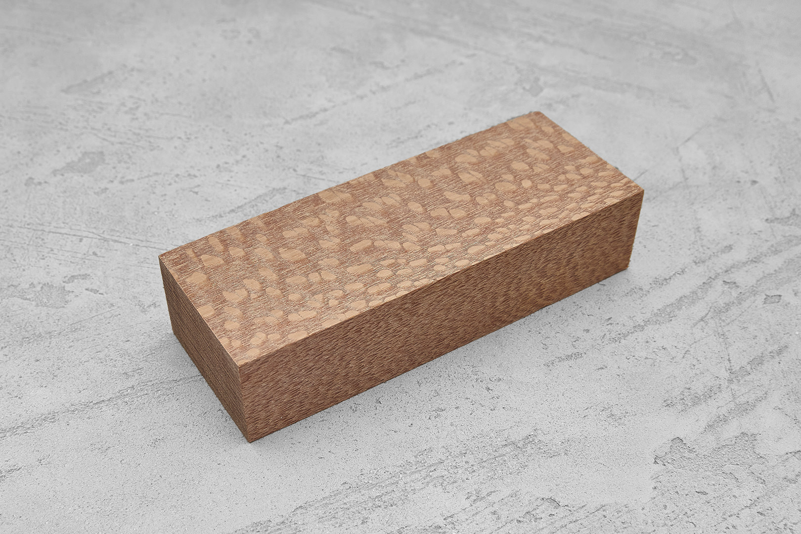 Целевые размеры бруска 135×46×30 мм, могут незначительно меняться в зависимости от особенности распила. На фотографии представлен образец, максимально соответствующий среднему бруску из партии, но фактическая текстура и тон каждой заготовки для рукояти будет незначительно отличаться.
