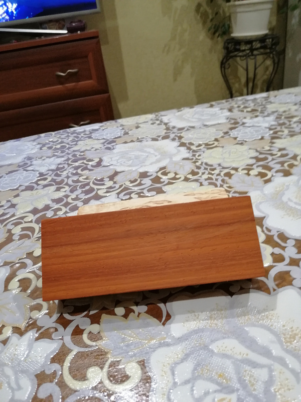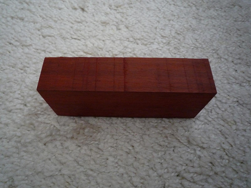 Очень красивая порода дерева. Цвет насыщенный красный, правда после пропитки маслом немного темнеет. Обрабатывается просто замечательно. Особо порадовала правильная геометрия бруска – при распиле на плашки почти не пришлось ничего выравнивать. Ну и доставка быстрая
