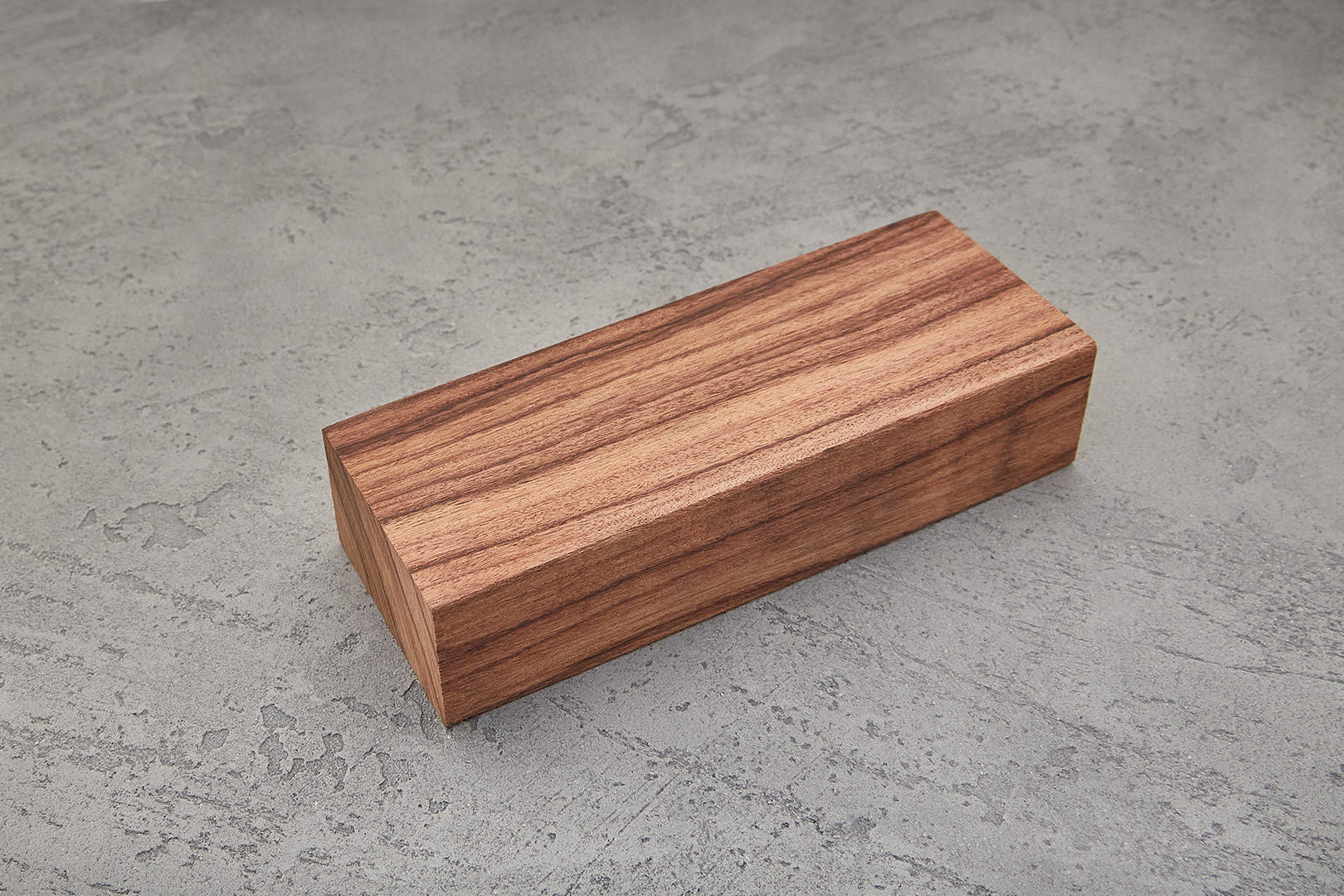 Целевые размеры бруска 135×48×30 мм, могут незначительно меняться в зависимости от особенности распила. На фотографии представлен образец, максимально соответствующий среднему бруску из партии, но фактическая текстура и тон каждой заготовки для рукояти будет незначительно отличаться.