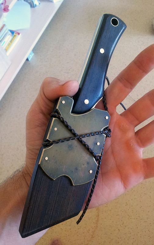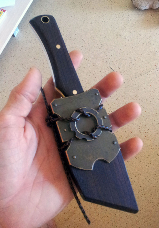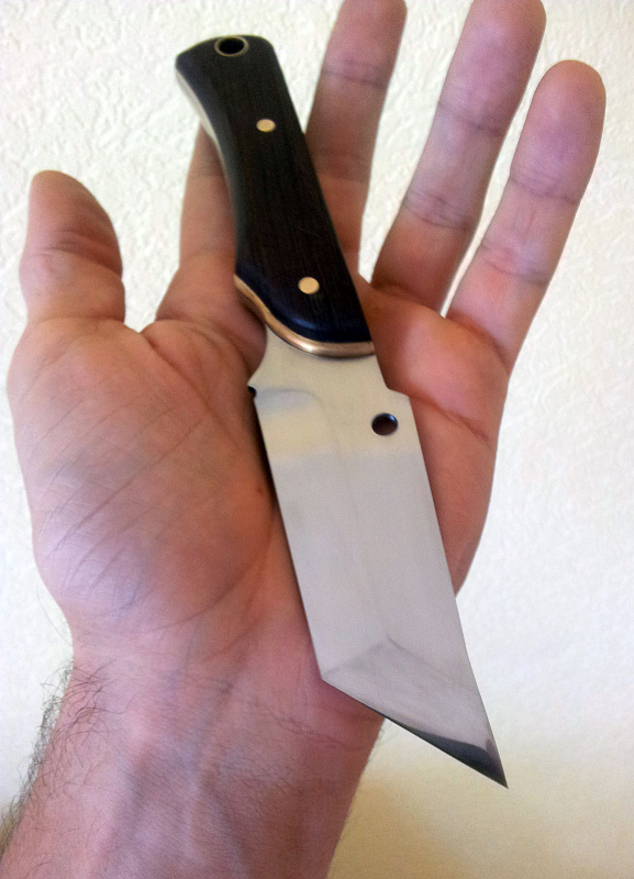 приятный материал, но плотность, на мой взгляд, ниже заявленной (легче того же кизила). Одного бруска хватило на накладки на рукоять и ножны небольшого (длина лезвия около 9 см) ножа. Цвет после обработки тунговым маслом стал темнее и контрастнее, что хорошо.