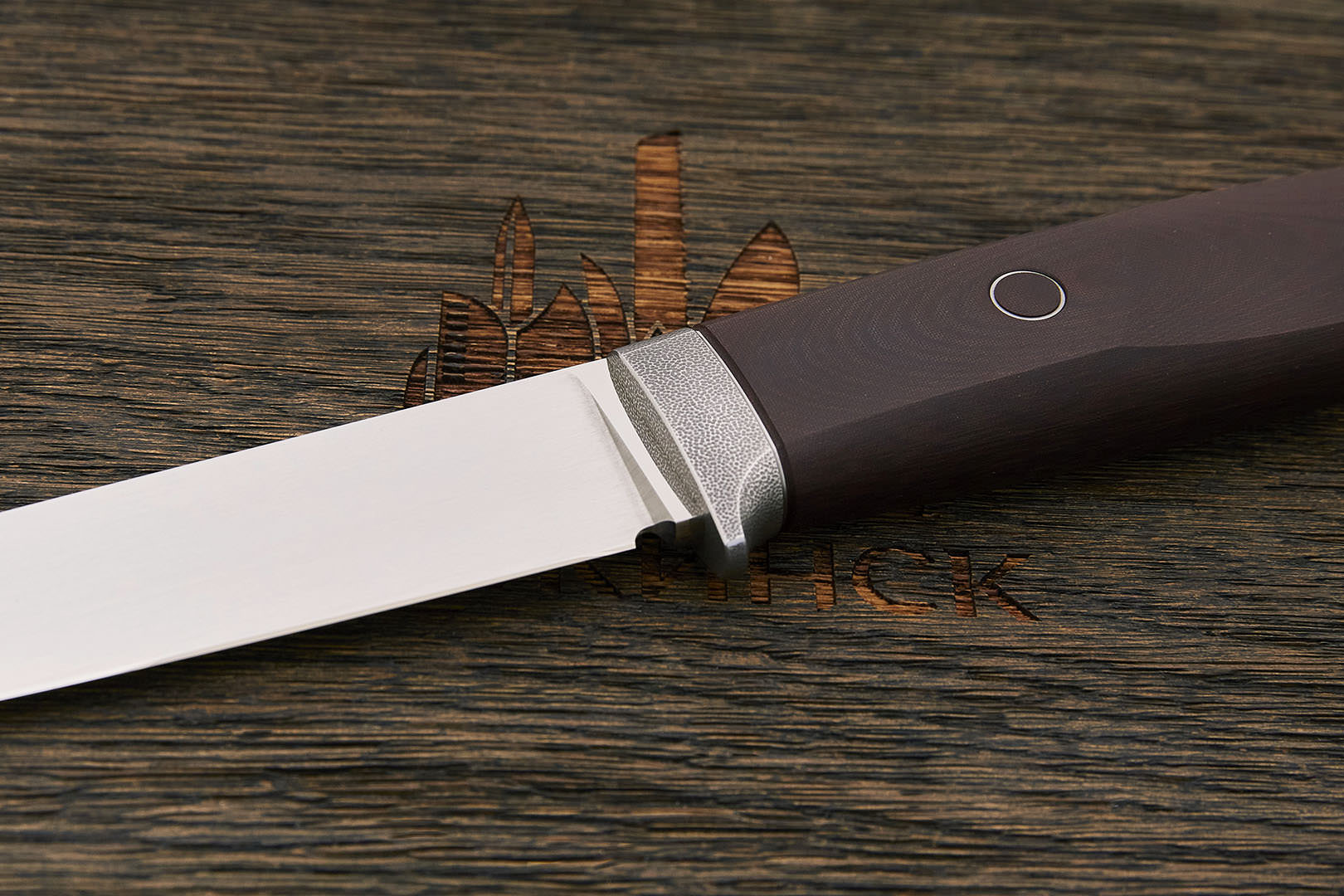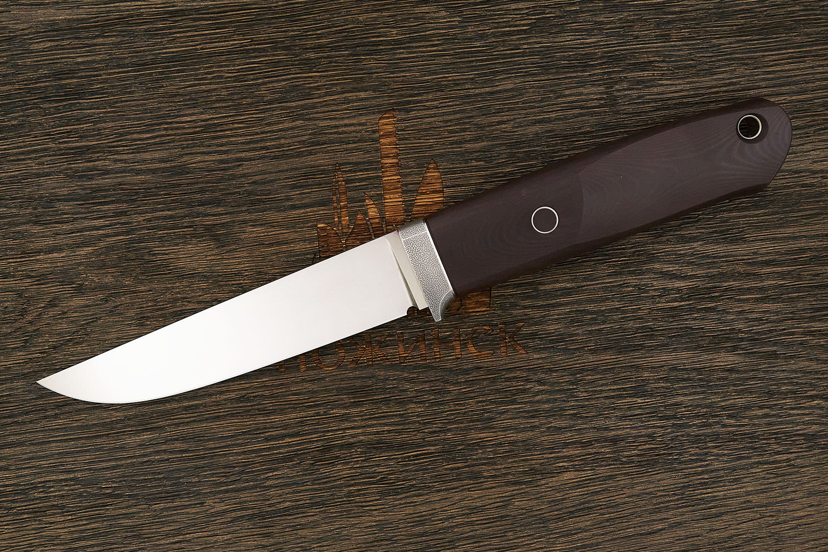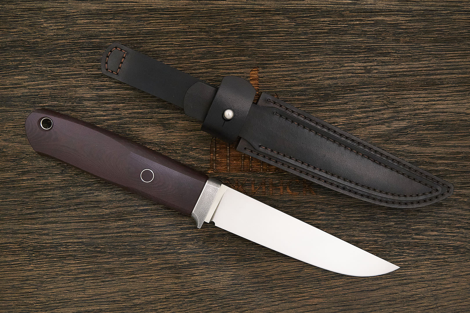 Микарта – очень прочный конструкционный материал, представляющий собой слоистый пластик на основе ткани и фенолформальдегидных или эпоксидных смол. Слои ткани пропитываются и склеиваются под высоким давлением и температурой. Благодаря совокупности потребительских свойств micarta (текстолит) прекрасно подходит для изготовления рукоятей ножей. Прочная, не впитывает ни воду, ни запахи, тактильная и высоко декоративная за счет разнообразия текстур и цветов. По теплопроводности микарта близка к натуральному дереву, что позволяет достаточно комфортно использовать ножи на сильном морозе.