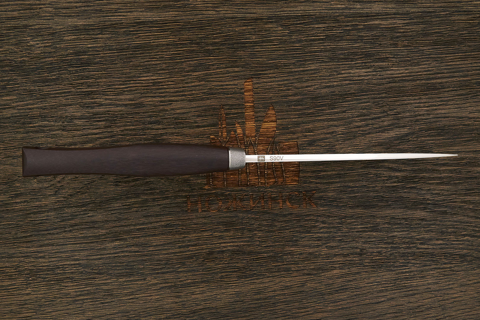 CPM S90V – коррозионностойкая высоколегированная мартенситная порошковая сталь разработки и производства американского концерна Crucible Industries. Эта сталь предлагает существенное улучшение износостойкости, по сравнению с 440C, за счет высокого содержания карбидов ванадия, оставляя больше свободного хрома для обеспечения коррозионной стойкости. Великолепно держит заточку, но ножи из этой стали тяжело точатся. Из-за сложности и высокой стоимости механической обработки CPM S90V практически не используется в серийном производстве. Авторские работы из этой стали популярны, но лежат исключительно в сегменте премиум-класса.