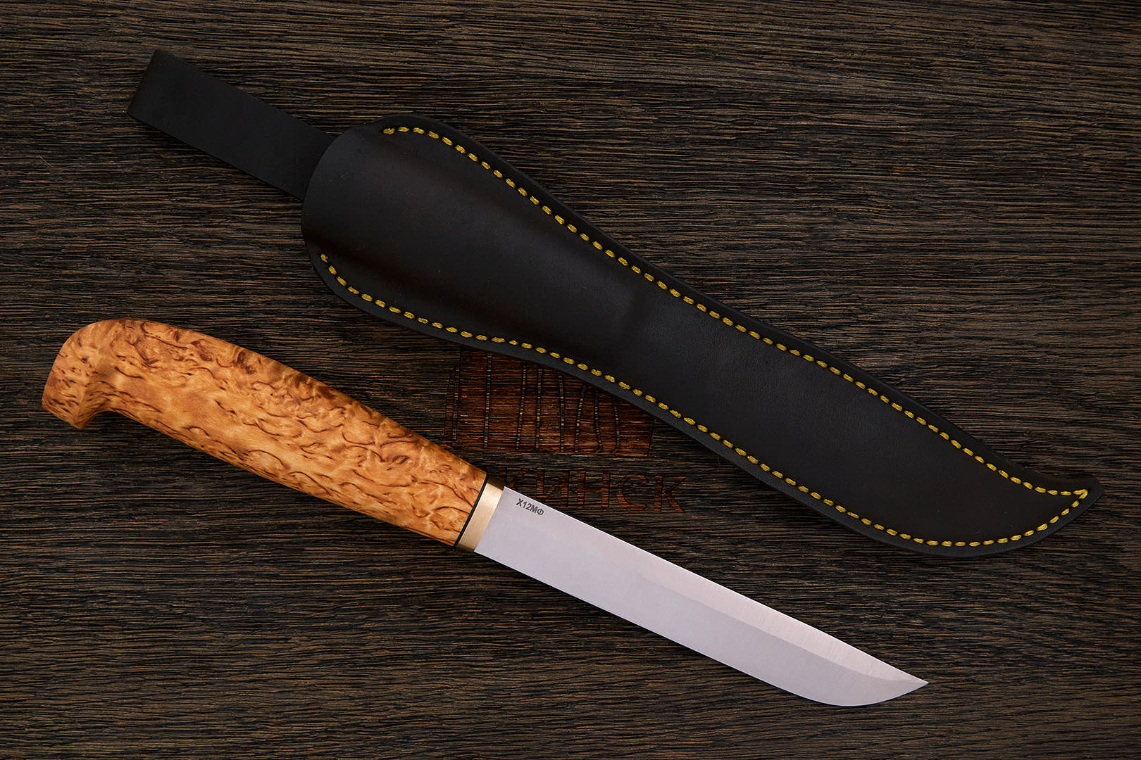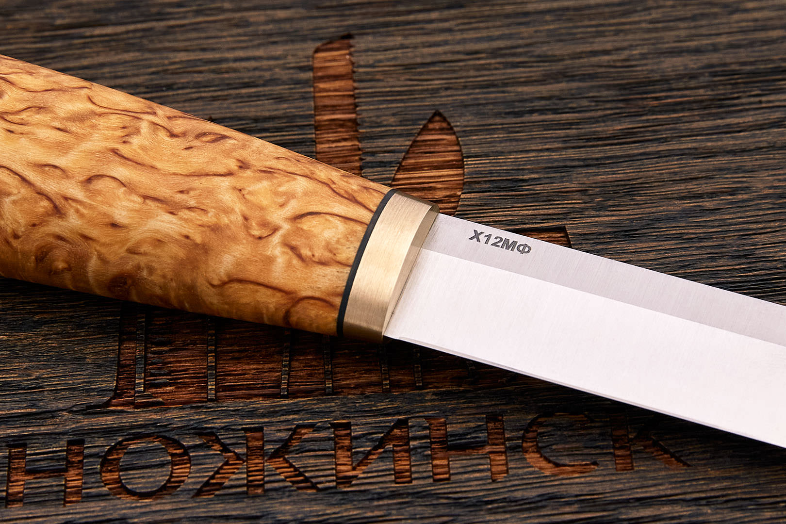 Х12МФ – высоколегированная условно коррозионностойкая сталь российского производства. Аналог американской D2. В состав стали входят молибден, ванадий, никель и другие. Сочетание элементов придает стали отличную прочность, упругость, устойчивость к воздействию температур, износоустойчивость.