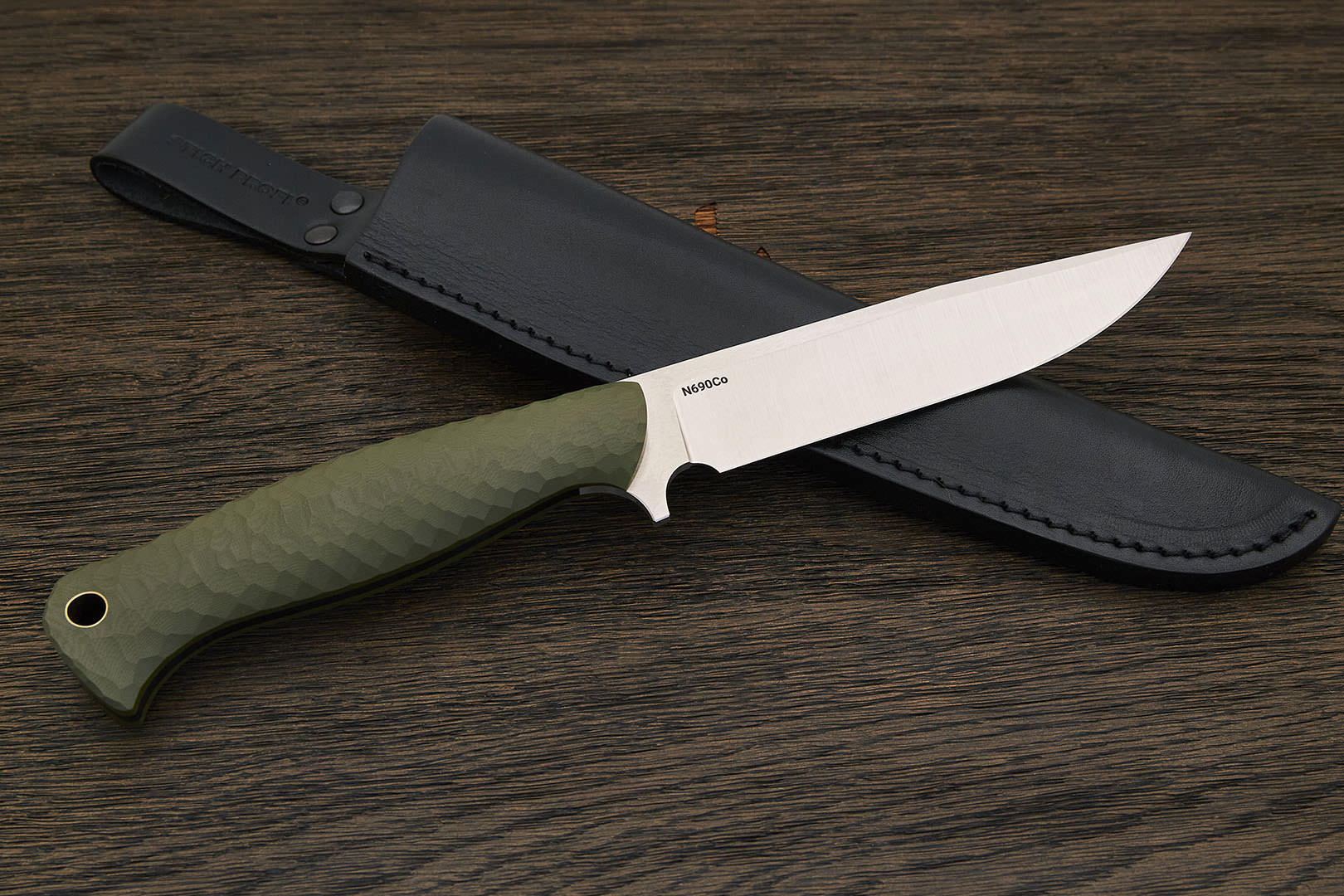 N690Co (N690) – коррозионностойкая немецкая инструментальная сталь производства Bohler-Uddeholm AG. Легирование кобальтом позволило улучшить сопротивляемость к высоким температурам и повысить общие механические качества.