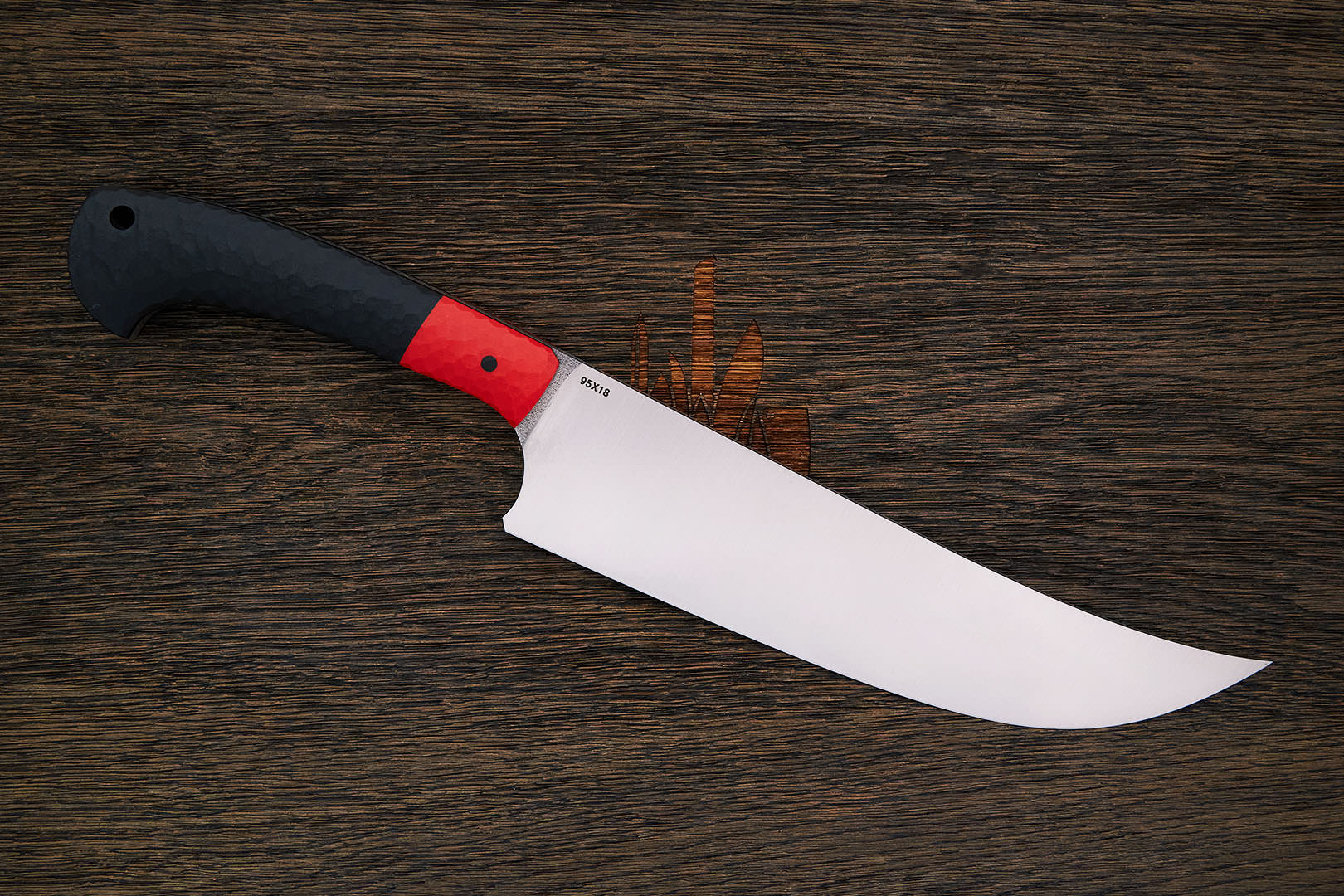 95Х18 – сложнолегированная мартенситная сталь отечественного производства, устойчивая к коррозии в атмосфере и умеренных агрессивных средах. Широко применяется в ножевом производстве, но достаточно сложна в обработке и требовательна к условиям ТО. При правильной термообработке сталь 95Х18 приобретает отличные режущие свойства и достигает твердости до 60-62 HRC. Обладает хорошей износостойкостью и прочностью. Сталь проста в обслуживании и не требует дополнительного ухода, хорошо полируется.