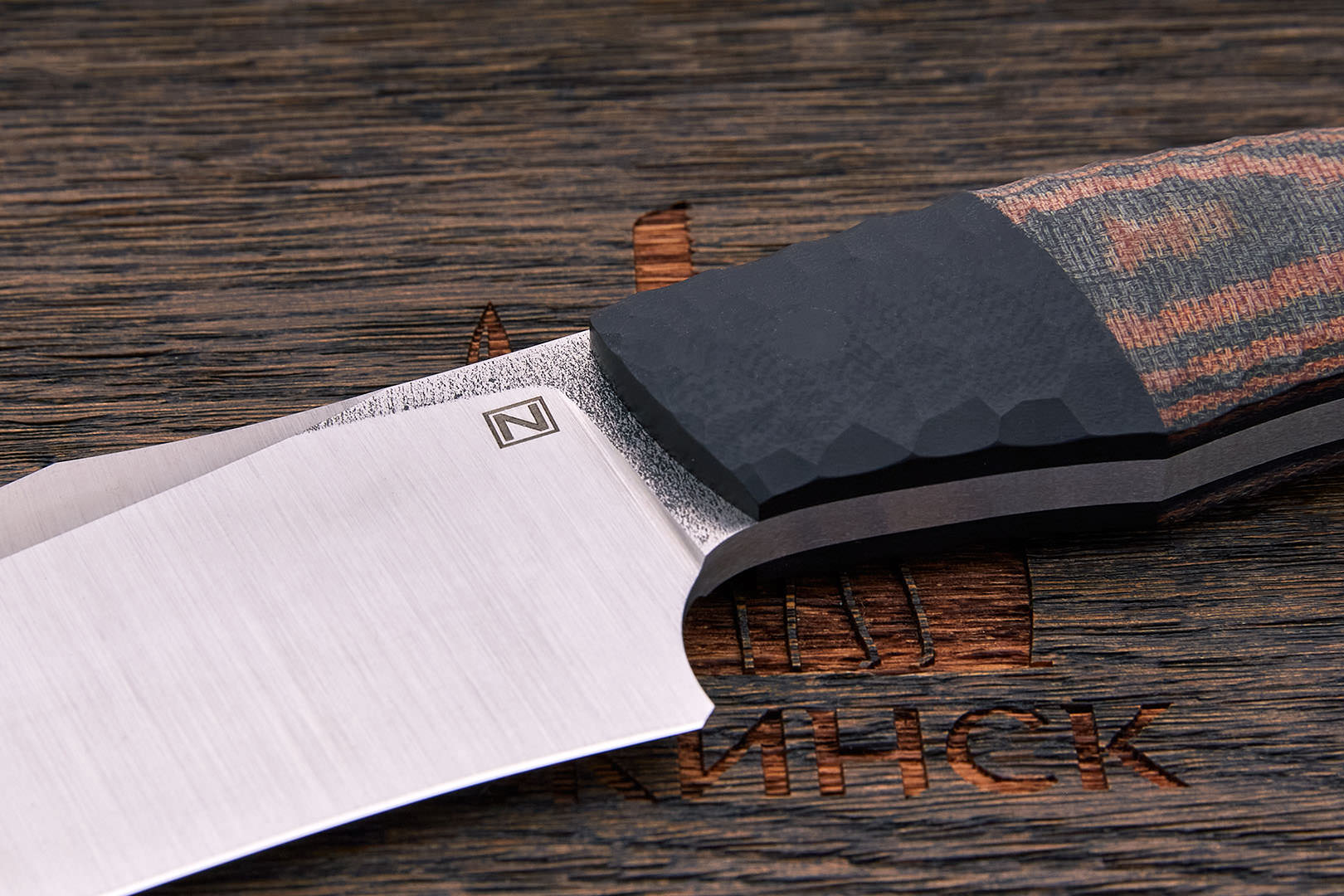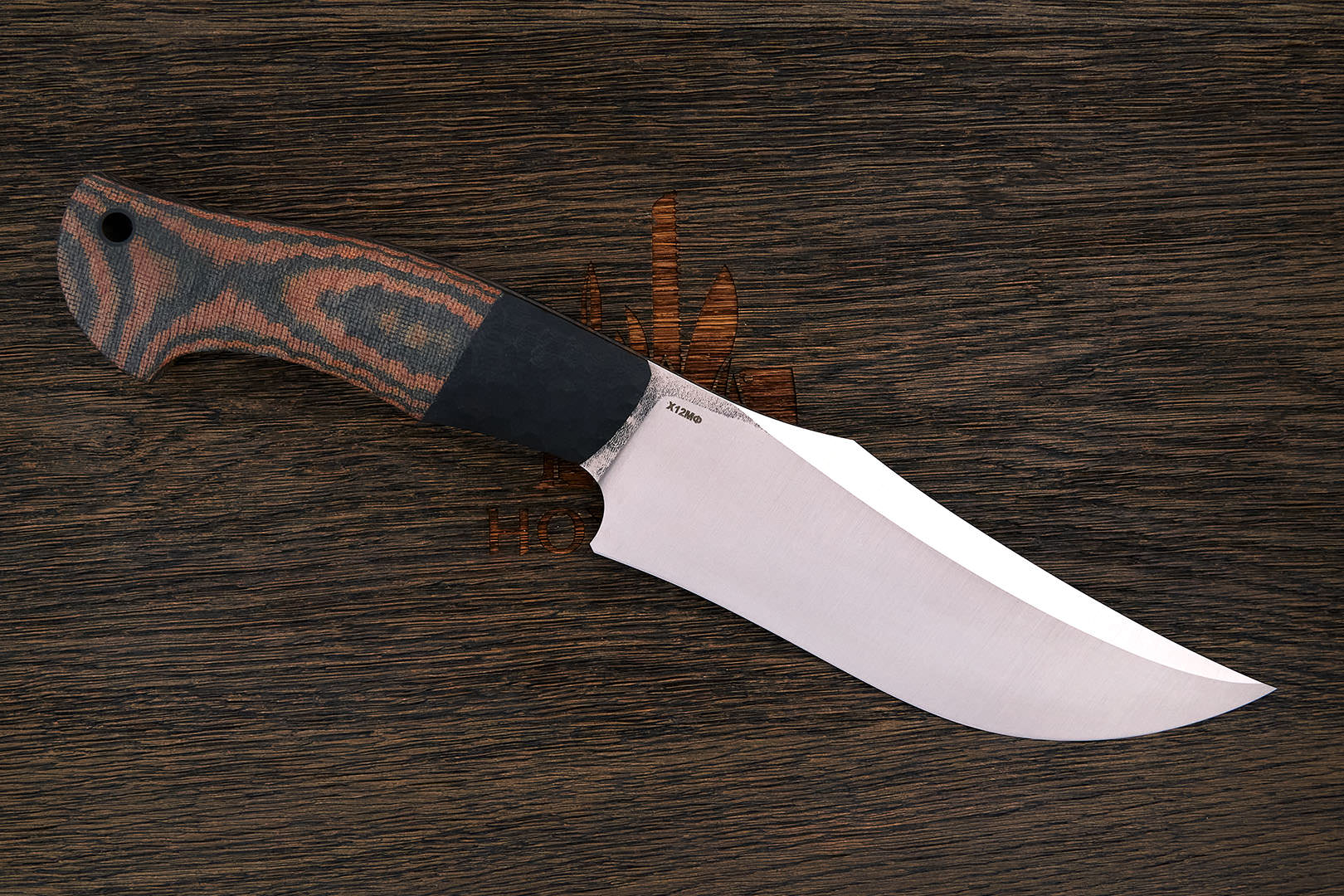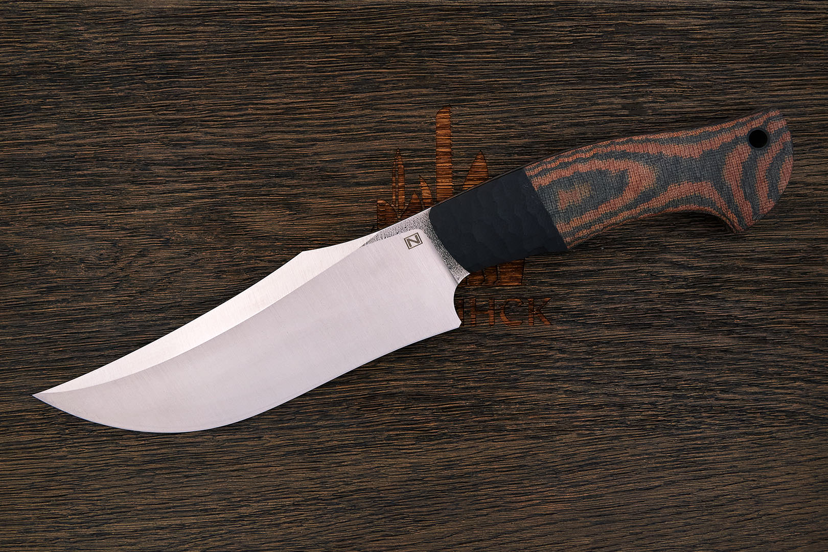 Микарта – очень прочный конструкционный материал, представляющий собой слоистый пластик на основе ткани и фенолформальдегидных или эпоксидных смол. Слои ткани пропитываются и склеиваются под высоким давлением и температурой. Благодаря совокупности потребительских свойств micarta (текстолит) прекрасно подходит для изготовления рукоятей ножей. Прочная, не впитывает ни воду, ни запахи, тактильная и высоко декоративная за счет разнообразия текстур и цветов. По теплопроводности микарта близка к натуральному дереву, что позволяет достаточно комфортно использовать ножи на сильном морозе.