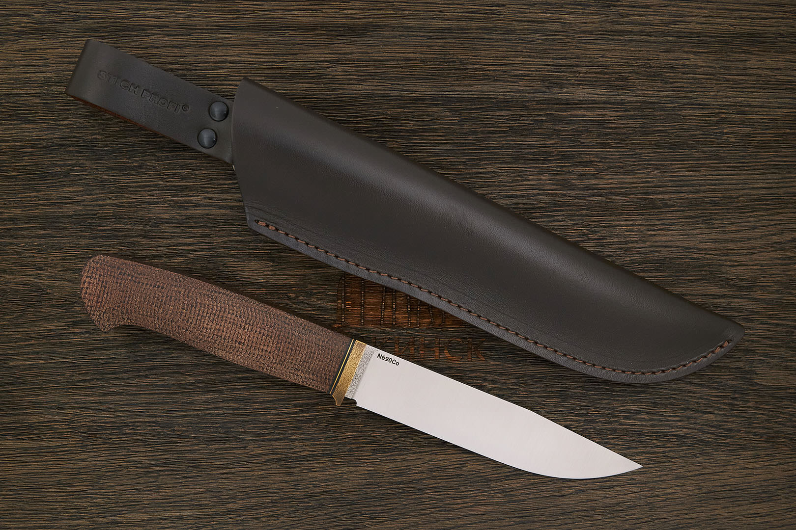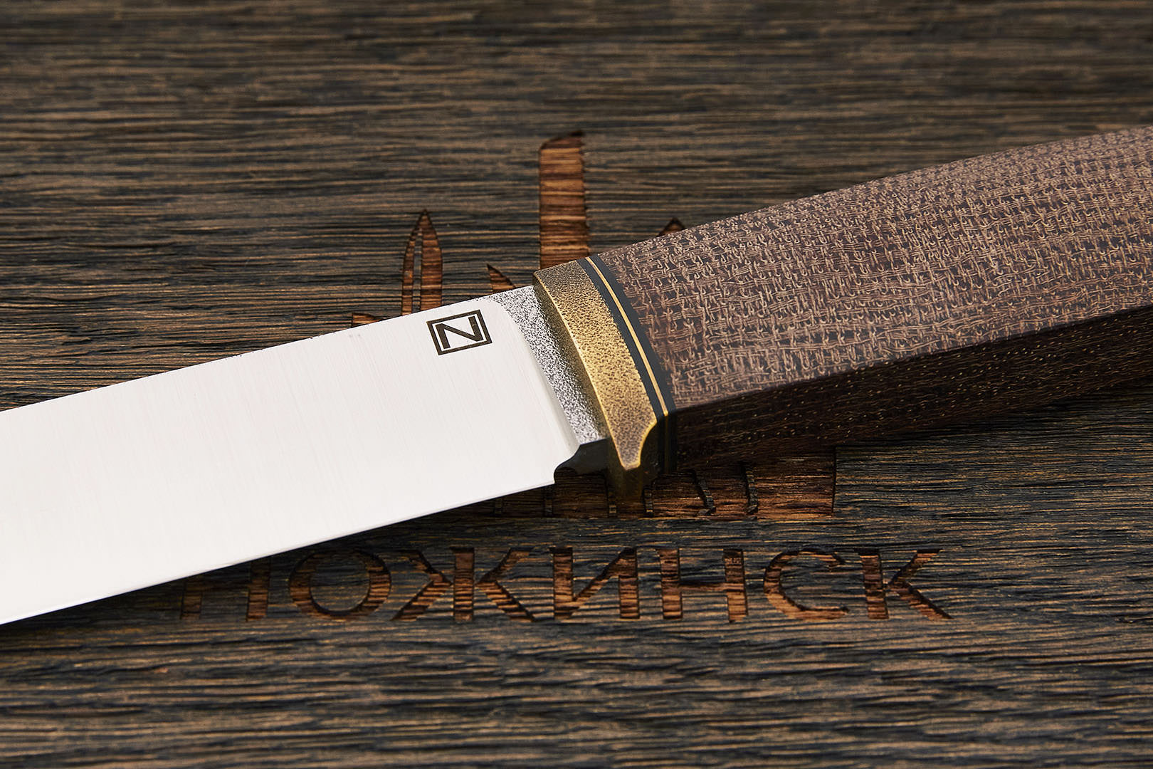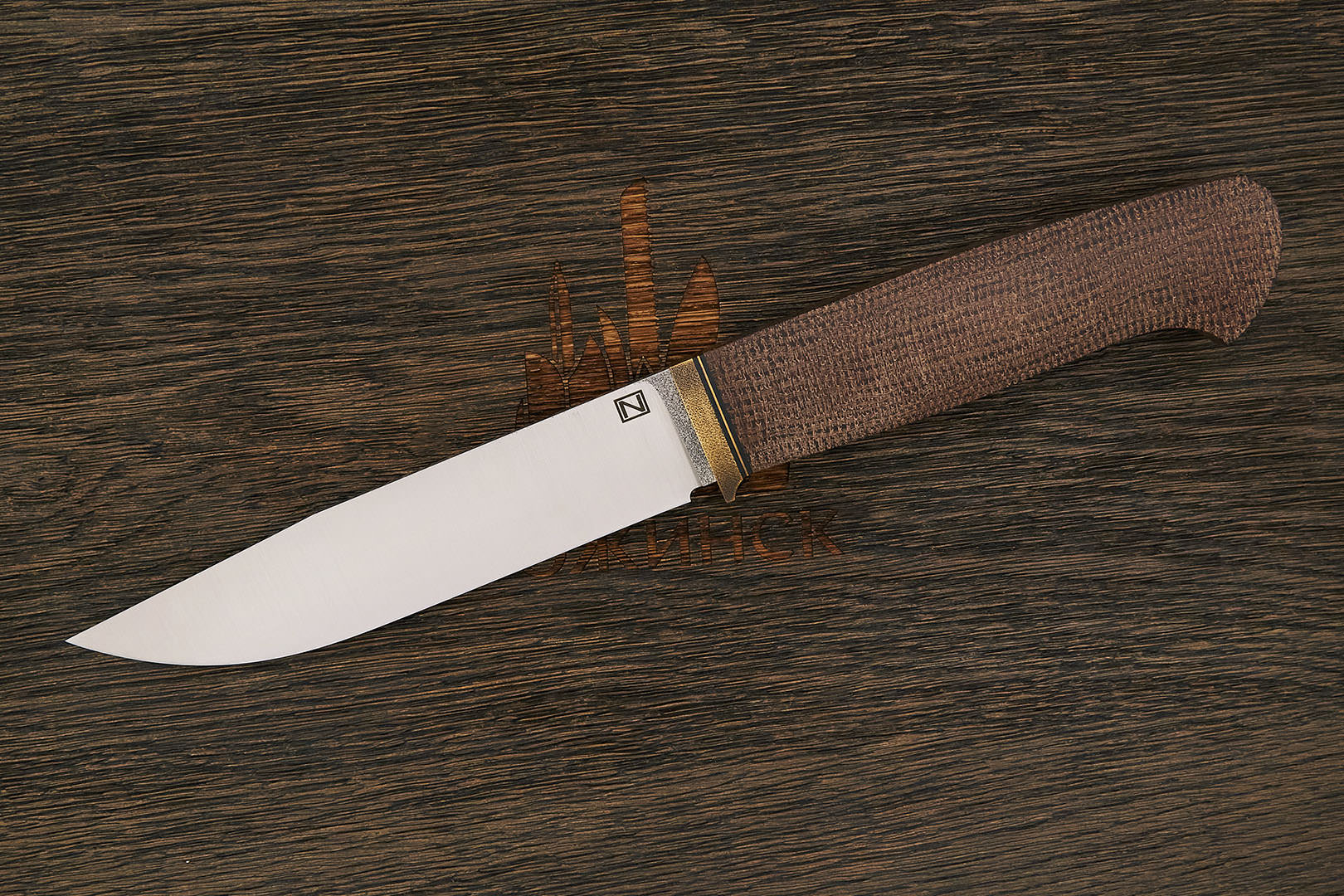 Микарта – очень прочный конструкционный материал, представляющий собой слоистый пластик на основе ткани и фенолформальдегидных или эпоксидных смол. Слои ткани пропитываются и склеиваются под высоким давлением и температурой. Благодаря совокупности потребительских свойств micarta (текстолит) прекрасно подходит для изготовления рукоятей ножей. Прочная, не впитывает ни воду, ни запахи, тактильная и высоко декоративная за счет разнообразия текстур и цветов. По теплопроводности микарта близка к натуральному дереву, что позволяет достаточно комфортно использовать ножи на сильном морозе.