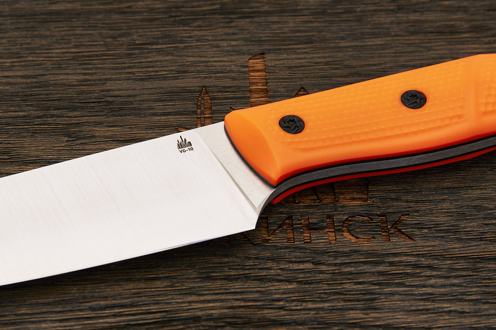 VG-10 (V Gold 10, VG10) – легированная кобальтом и молибденом высокоуглеродистая коррозионностойкая сталь. Была специально разработана японской металлургической компанией Takefu Special Steel для нужд ножевой промышленности. Обладает великолепными режущими свойствами, отличной стойкостью режущей кромки и некапризна в заточке. Вязкость этой стали достаточна для того, чтобы не выкрашиваться даже при твердости 60-61 HRC. Из-за сбалансированного набора режущих и прочностных качеств заслужила отличную репутацию у производителей ножей. Широко используется в производстве кухонных, реже складных и охотничьих ножей японских и американских компаний.