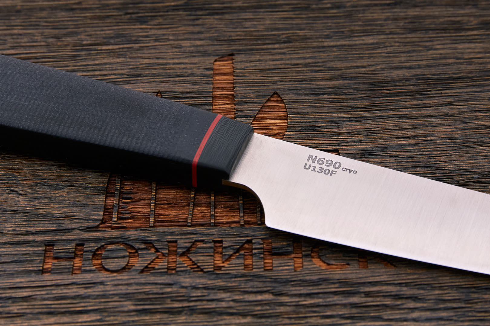 N690Co (N690) – коррозионностойкая немецкая инструментальная сталь производства Bohler-Uddeholm AG. Легирование кобальтом позволило улучшить сопротивляемость к высоким температурам и повысить общие механические качества.