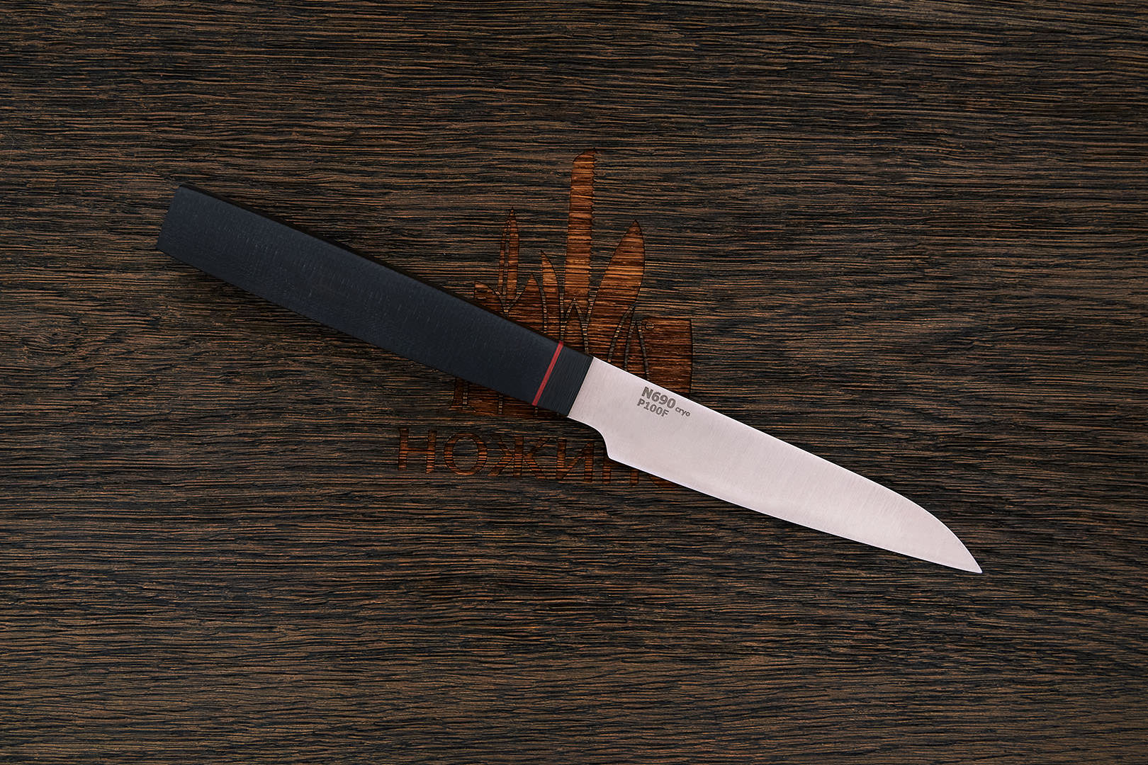 N690Co (N690) – коррозионностойкая немецкая инструментальная сталь производства Bohler-Uddeholm AG. Легирование кобальтом позволило улучшить сопротивляемость к высоким температурам и повысить общие механические качества.