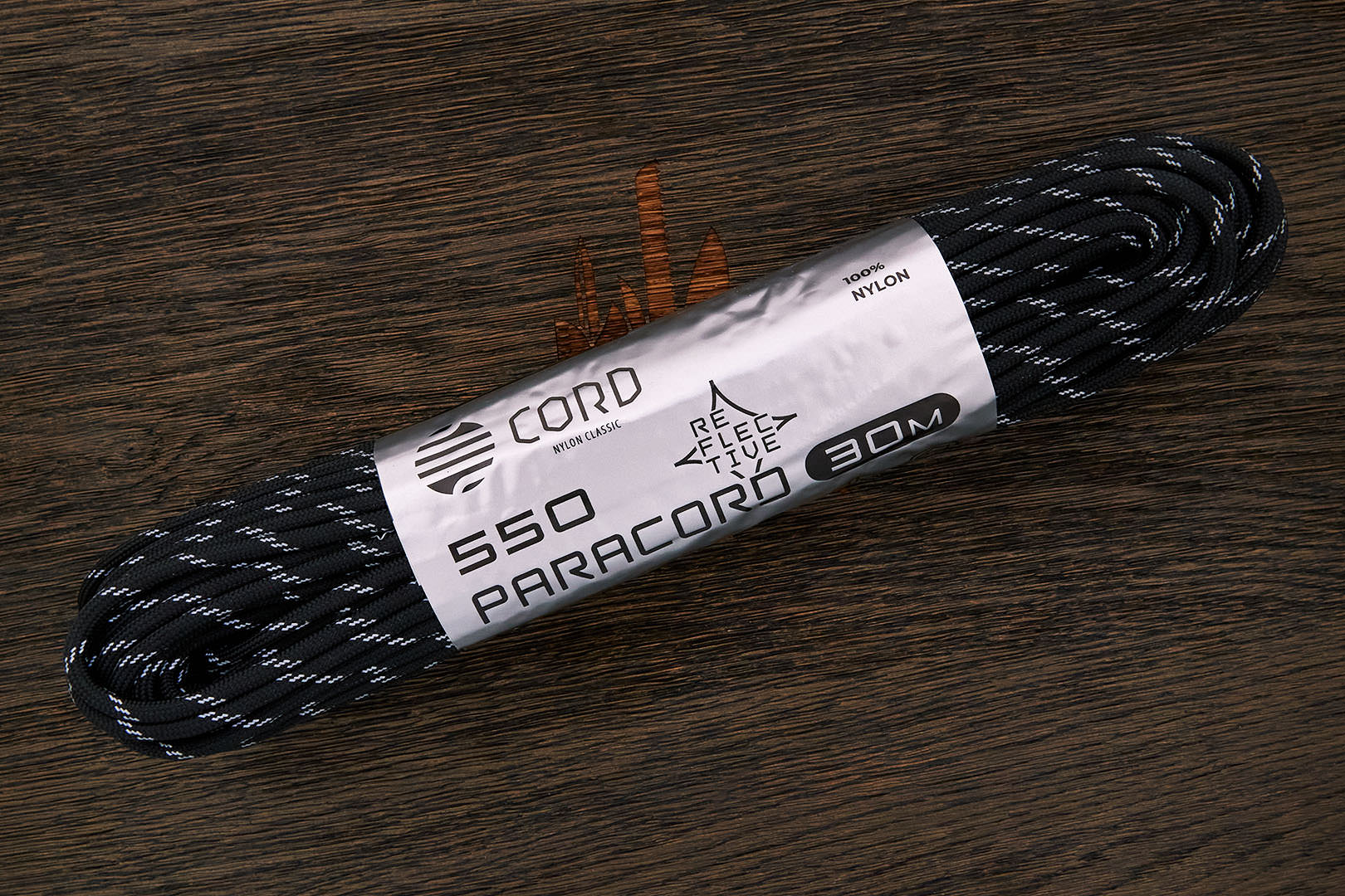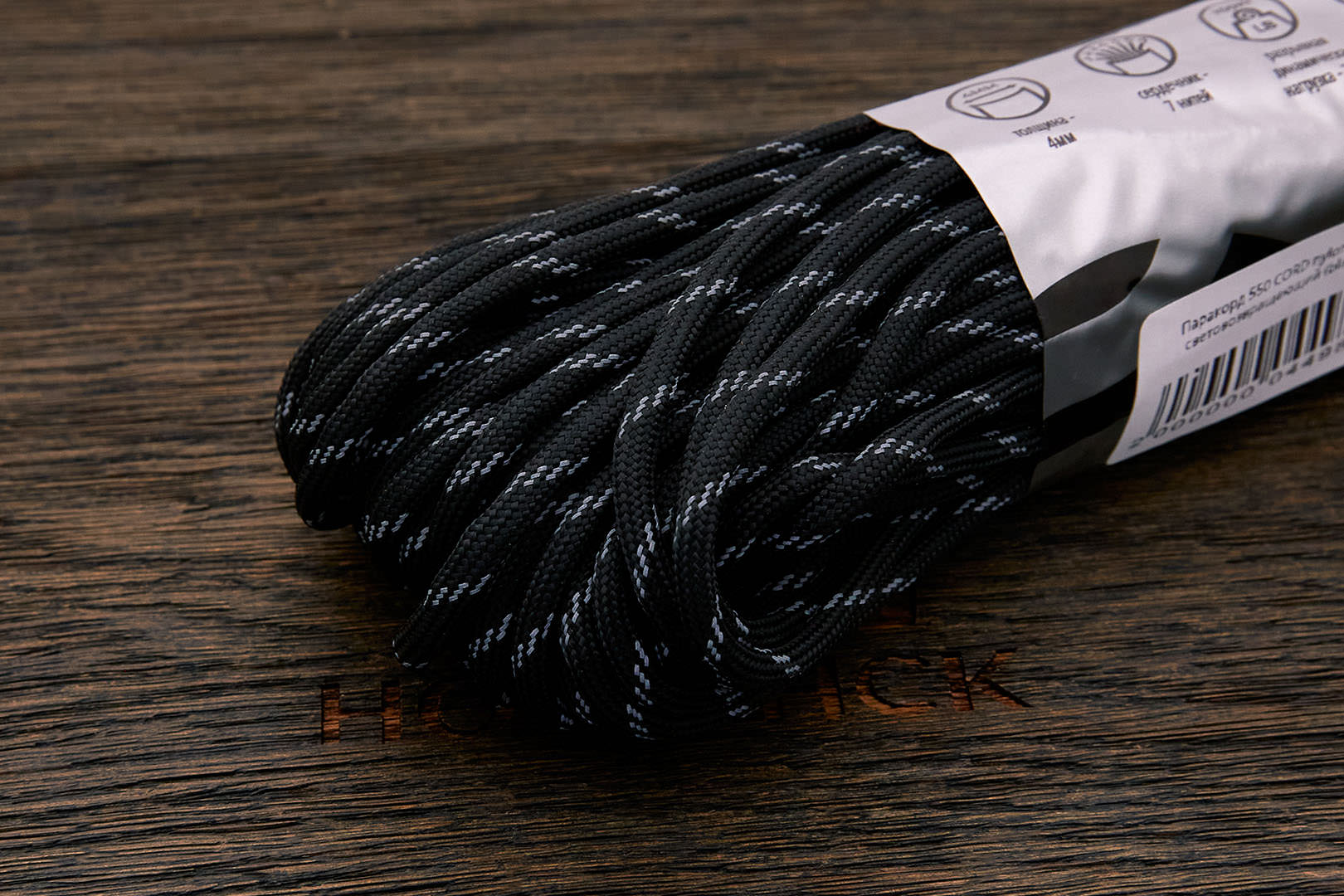 Американский армейский паракорд Type III 550 cord со светоотражающей нитью , 100% нейлон. Диаметр 3,5мм, сердечник 7 нитей. Минимальная нагрузка на разрыв 249 кг.