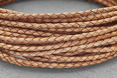 Кожаный плетеный шнурок 3,0мм (бежевый), 1 метр