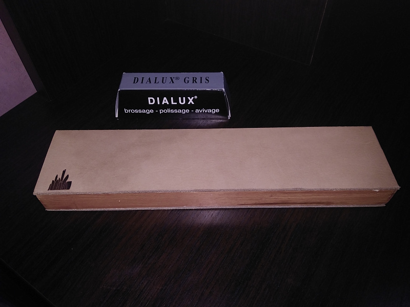 Деревянный брусок 240×50×25 мм, с наклеенной с двух сторон кожей для нанесения полировальных паст.