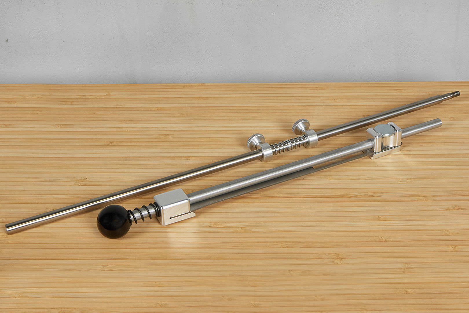 Удобный держатель абразивов позволяет оперативно переустанавливать различные бруски, бланки и другой инструмент. Несущая пластина вдоль всей длинны бруска обеспечивает дополнительную жесткость крепления абразивных камней и снимает излишние нагрузки, тем самым эта пластина дает возможность работать с хрупкими камнями без использования бланков. Расстояние от ручки до камня не зависит от длинны абразива, это повышает контроль при доводочных операциях.