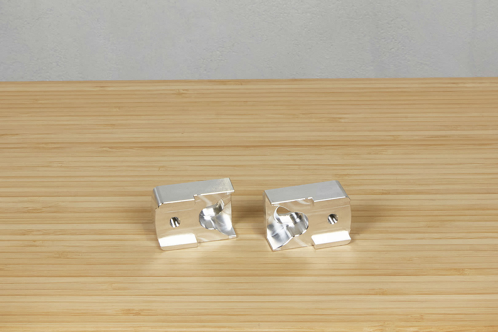 Каждый из адаптеров фрезеруется из монолитного бруска алюминиевого сплава. Форма адаптера повторяет форму рамки устройств и гармонично вписывается во внешний вид устройств. Отверстие для крепления к зажиму имеет овальную форму, для унификации с зажимами любой ширины.